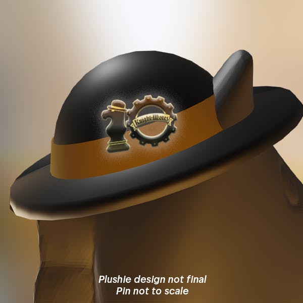 The Knight Plushie and the 10 yr pin all together! You could even combine them to their final form by putting the pin onto the bowler hat :)
