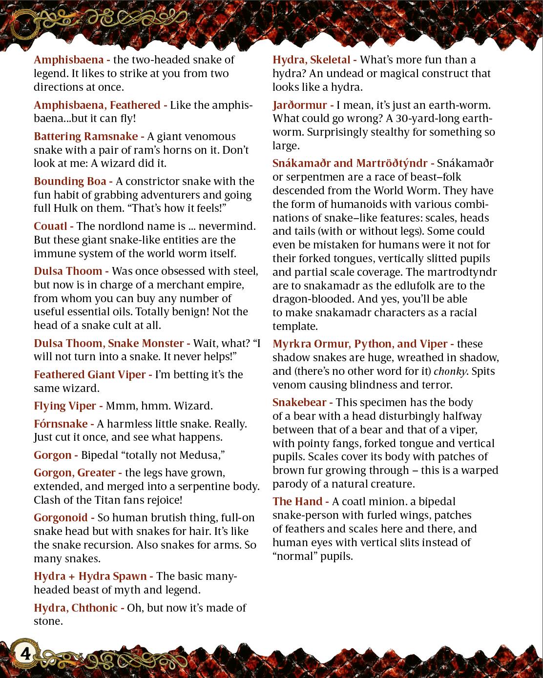 Build-a-Snek to customize serpent-monsters (and serpent-people!) to your needs