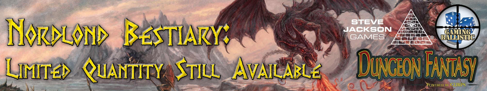Gaming Ballistic is thrilled to present the next volumes in a hopefully ever-expanding set of ready-to-play creatures for your Dungeon Fantasy RPG games...or anything else that needs some horrific fun!