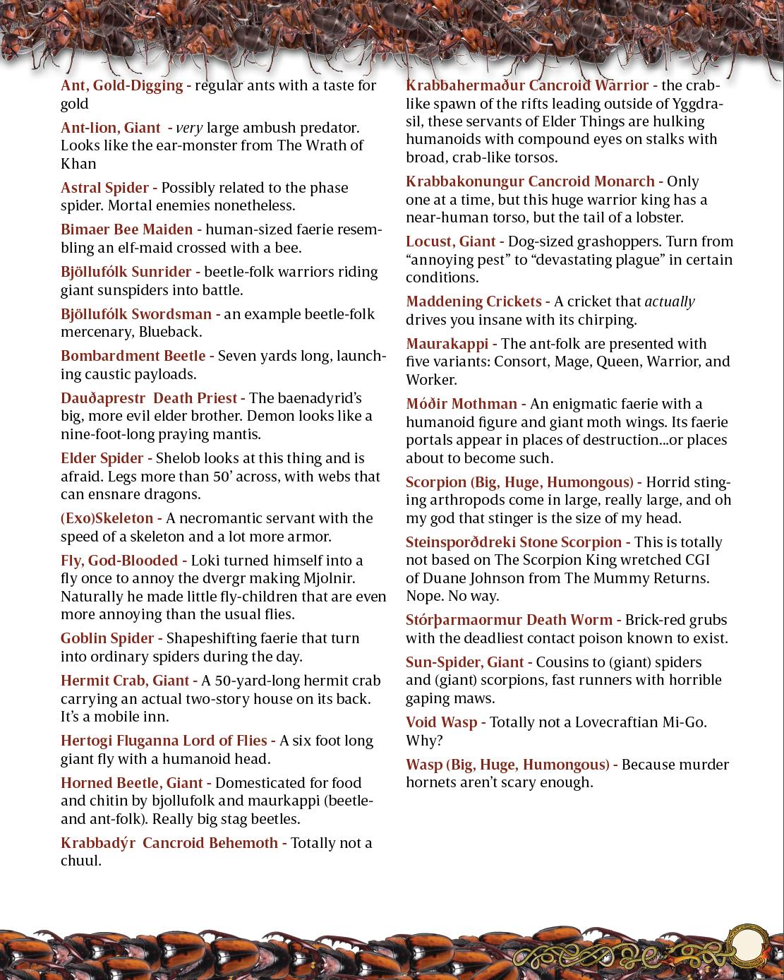 This book is a straight-up catalog of crawling horror: At least 32 different insects, arthropods, and near-human (-ish? -oid?) creatures, ready to play.