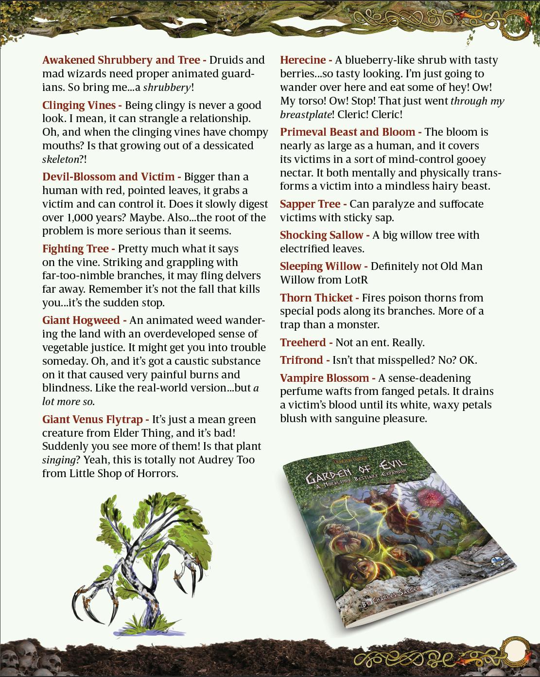 Evil willows. Walking foliage. Clinging vines. Carnivorous flytraps. Sixteen different flavors of plant monster. Sing it with me: Delvers sure look like plant-food to me!