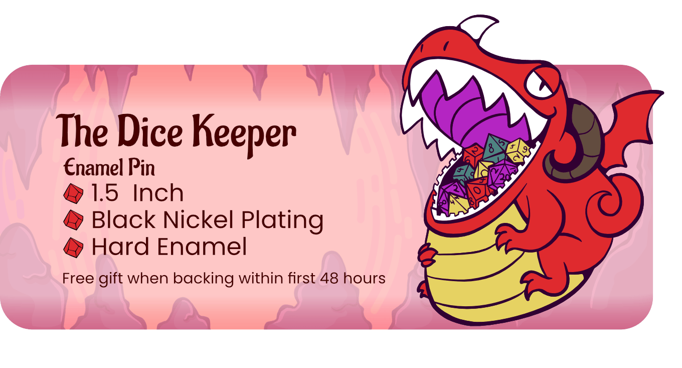 Get notified when the campaign launches to secure a free enamel pin during the first 48 hours as thanks for helping to roll out the red carpet for our little hoard keeper!