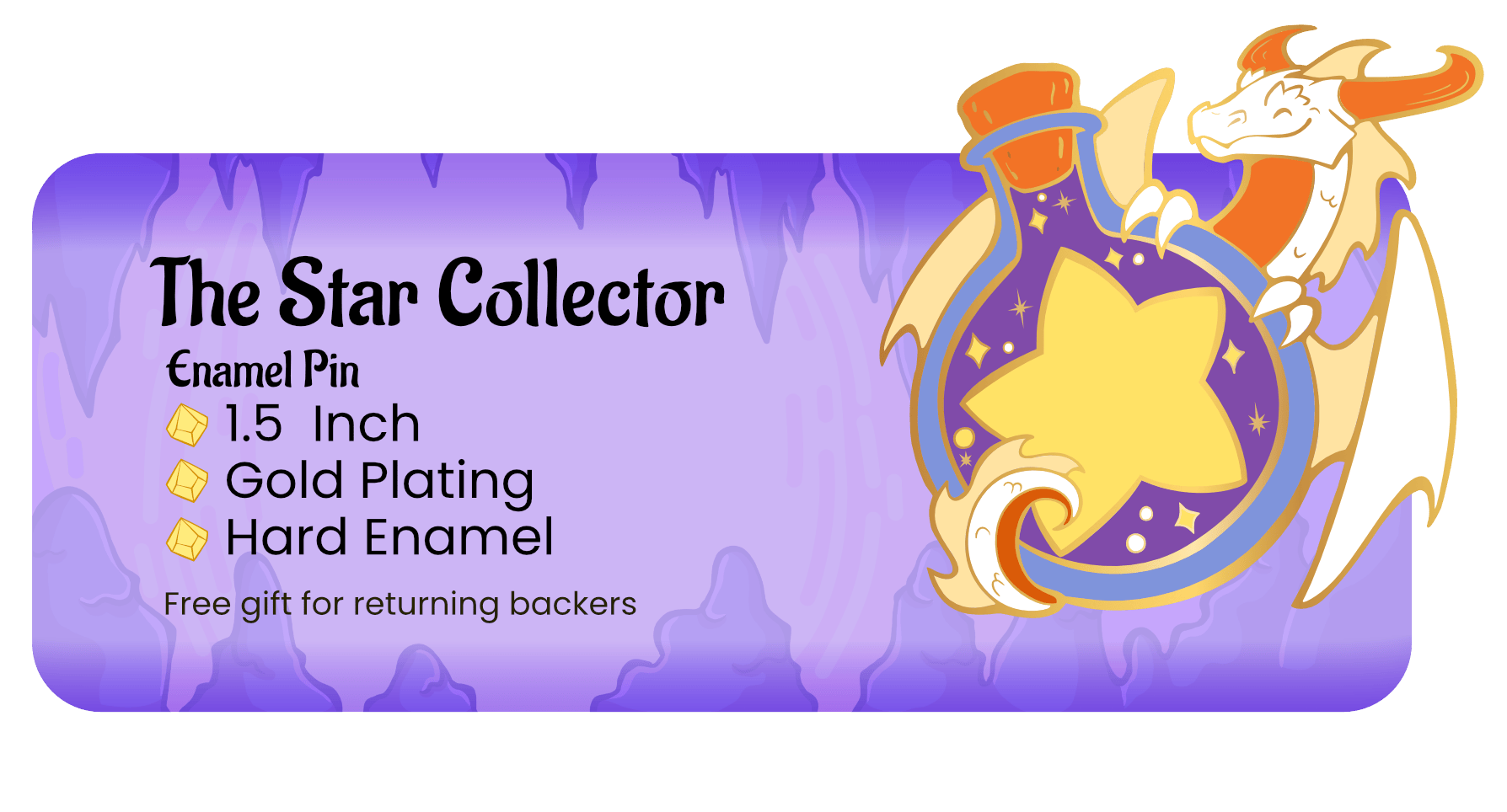 For our wonderful returning backers, you will also receive a 1.5 Inch Star Keeper Enamel Pin will be added to your pledge as a thank-you for your continued support!