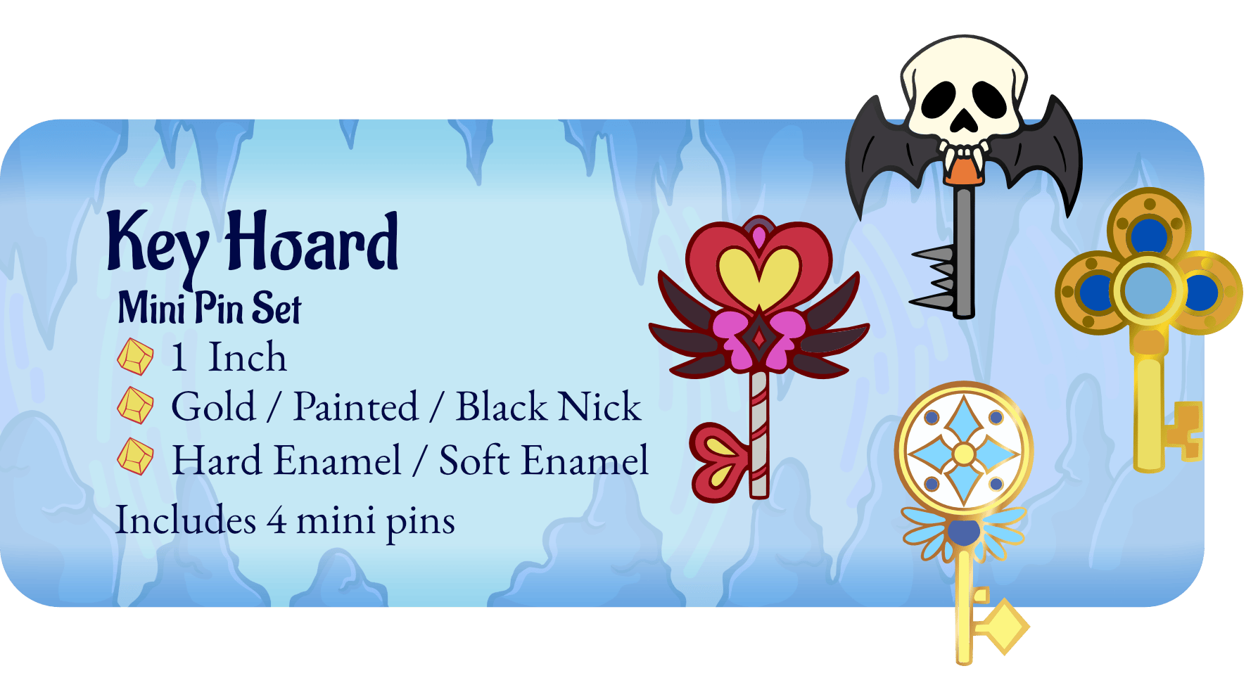 Skull Keeper Dragon Hoard Keeper and Mini Hoard enamel pin sets available in add-on section!