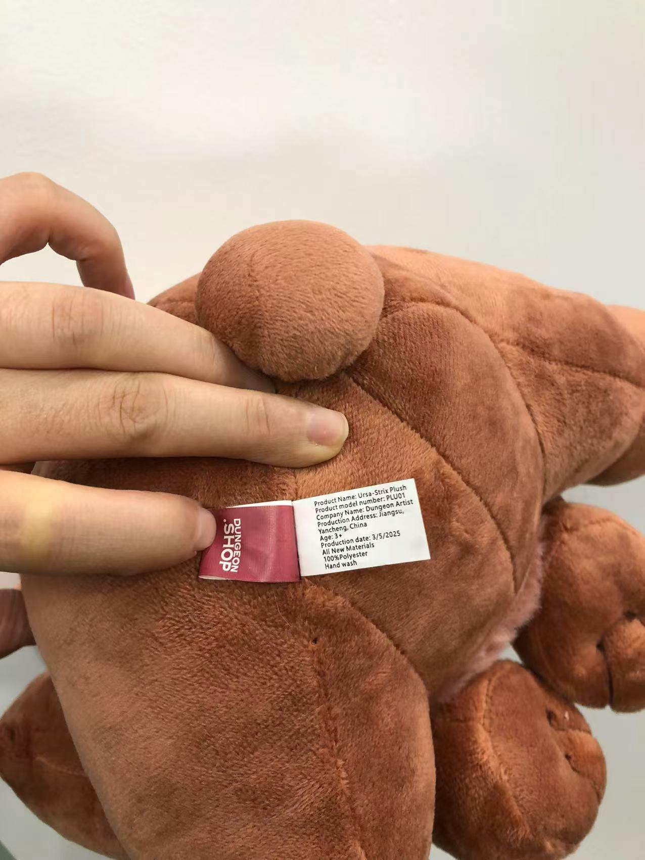 As for plush, manufacturing is also done on those, and they are on their way as well. They've had their safety certification completed, and now have tags! Here is what those tags look like: