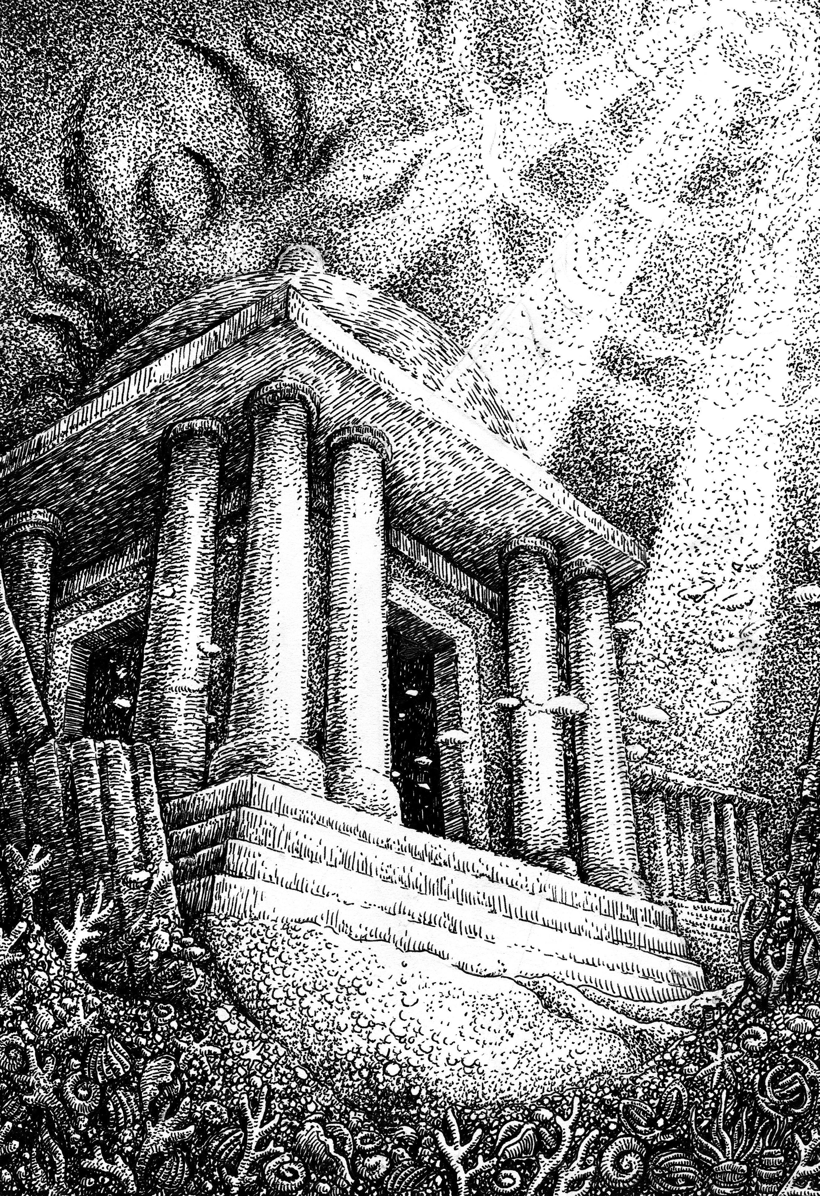 The beautiful and lost city of Chromatica, ink on paper by Chris Hodge. Chris Hodge also taught art and photography to The Dungeon Damsel in High School! He's a cool fella.