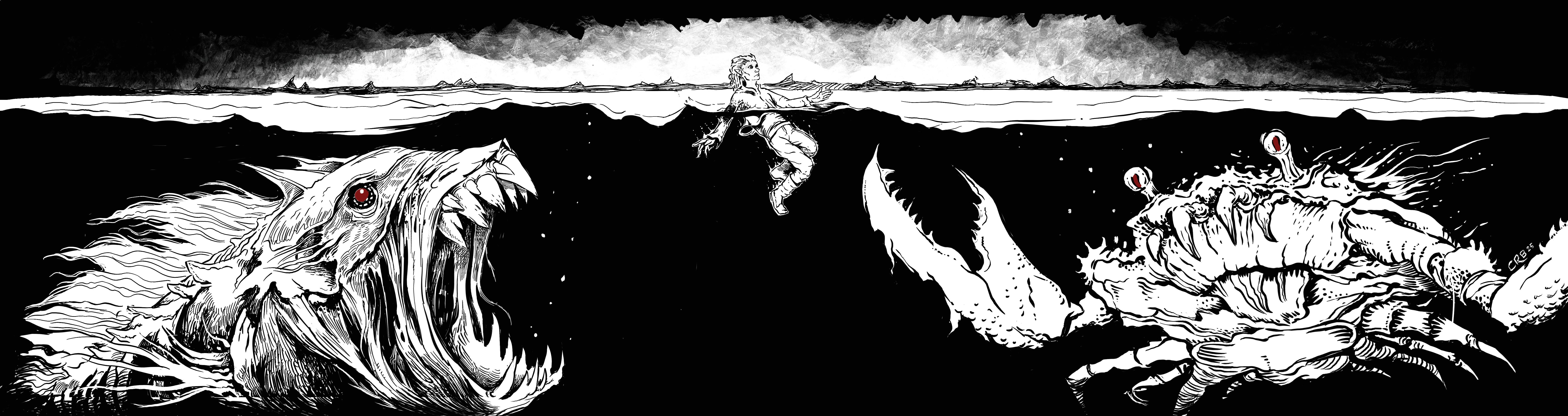 Here is an image of the Underground Sea in Cape Black, with undead creatures lurking in its oily depths. Piece by Craig Brasco.