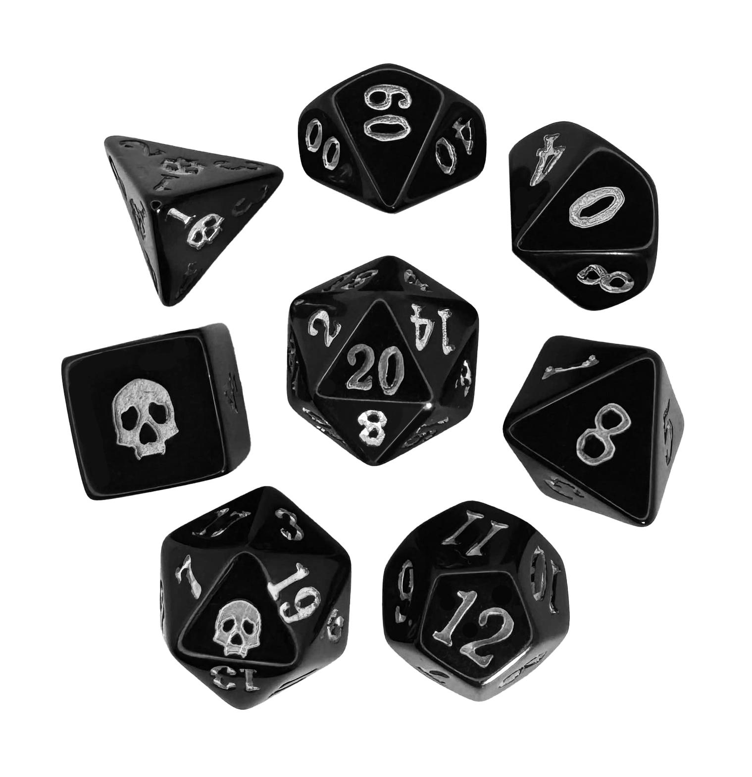 Extra d20 to showcase the skull. The Free dice set will be the standard 7-piece TTRPG dice set.