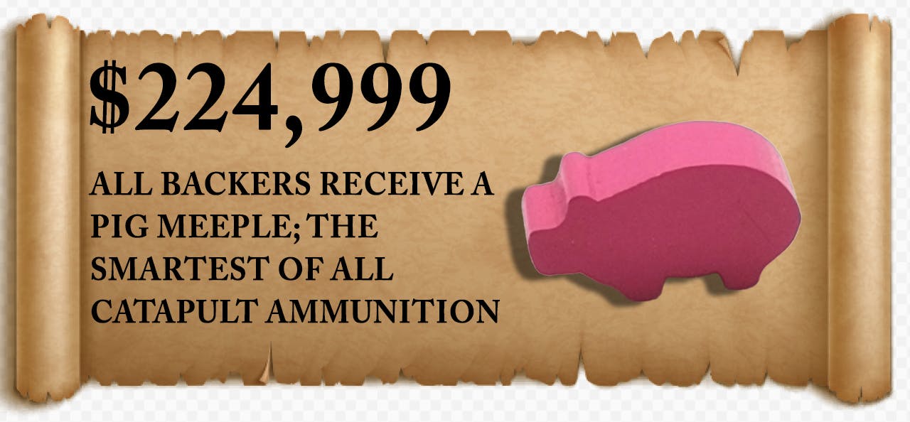 But Questing isn’t the only way to make your friends’ lives more difficult! The Black Knight wanders across the land, looking for Knights to do battle with. If you manage to win the fight, and give the Black Knight a “scratch”, keep his limb as a "power-up" for the rest of the game! And if the Black Knight doesn’t get you, the catapult will when your opponent chooses to launch cow meeples across the board to hit pawns and gain even more Valor points. There’s many ways to earn points and win the game, and all of them are crazy so good luck playing with a straight face!