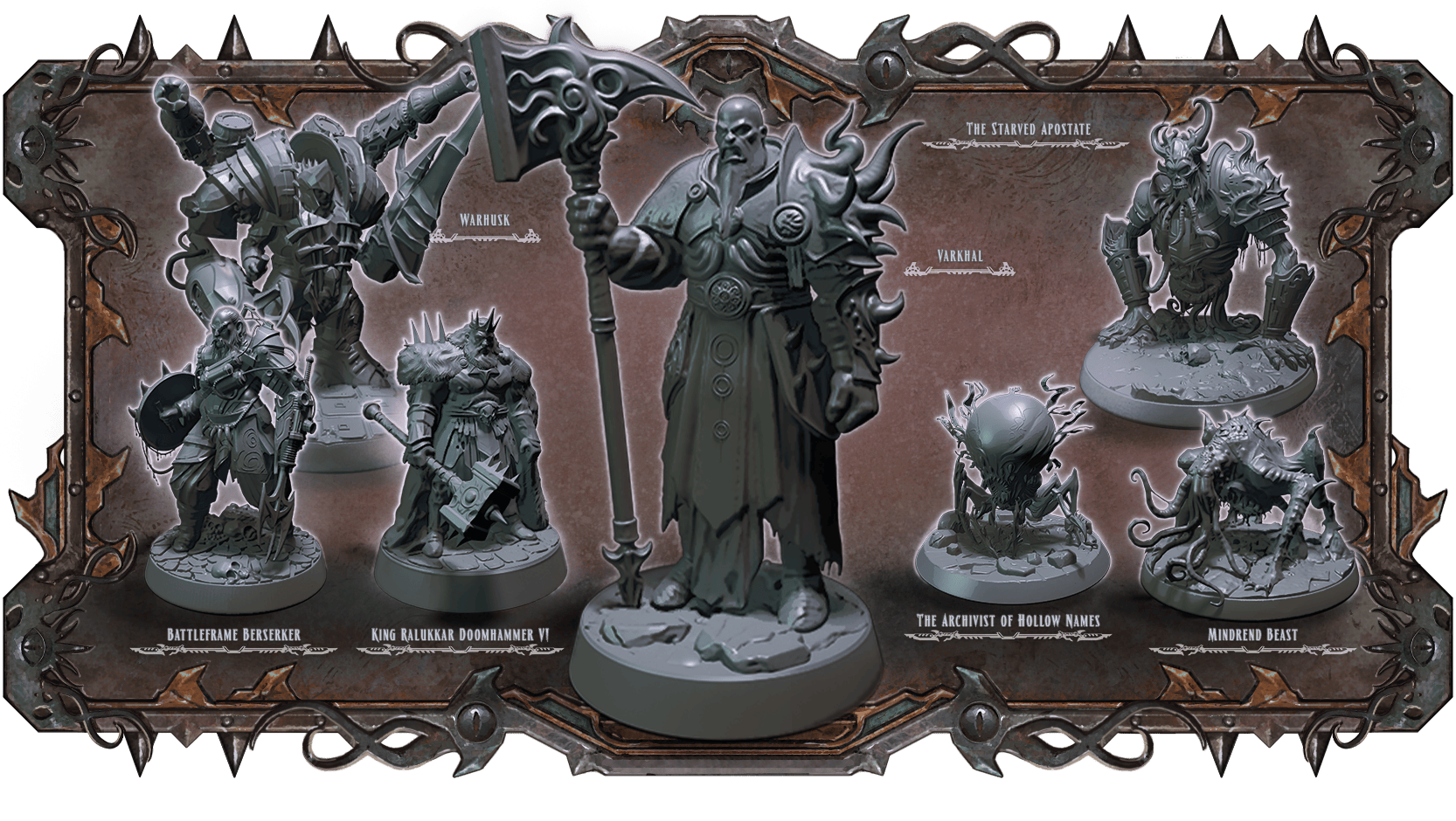 Varkhal (Huge): The iron giant cultist and leader of a sect that venerates madness and the eldritch entities of the Farrealm, towering above his followers as both prophet and executioner.