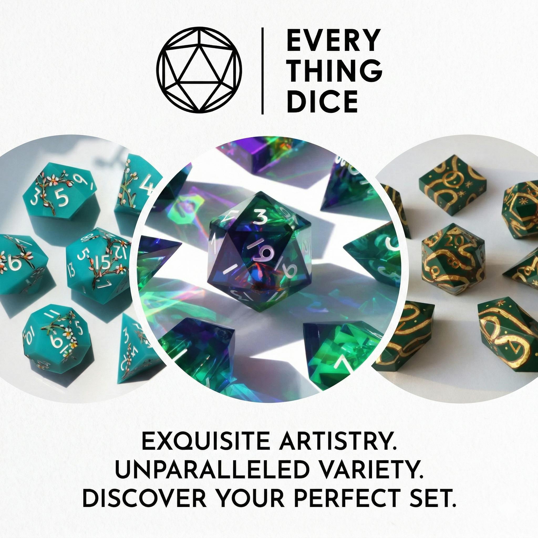 Everything Dice is a collective of resin artists working together to bring you the very best accessories for your tabletop gaming experience! All our dice are crafted in-studio, made lovingly with care over hundreds of hours of practice. We hope you enjoy rolling our dice as much as we enjoy making them! Visit https://everythingdice.com/discount/ELDER15 or manually enter ELDER15 at checkout for 15% off your first purchase.
