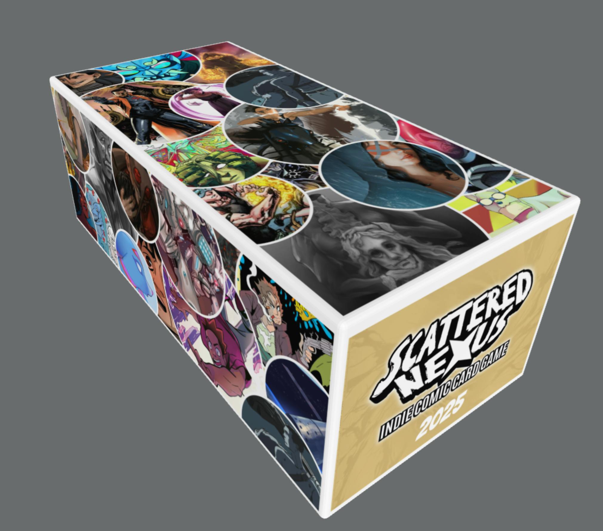 Been chipping away at the new mat design and game box, and finally feel like I got something good. I thought about it for a while, but I think I I wanna try to incorporate some of the upcoming comics too, to celebrate the all the whole year. Sadly it is subject to change if some of them decide they don't wanna sign up anymore (there are 12 other comics in the wing), but I should have all that done before the campaign ends.