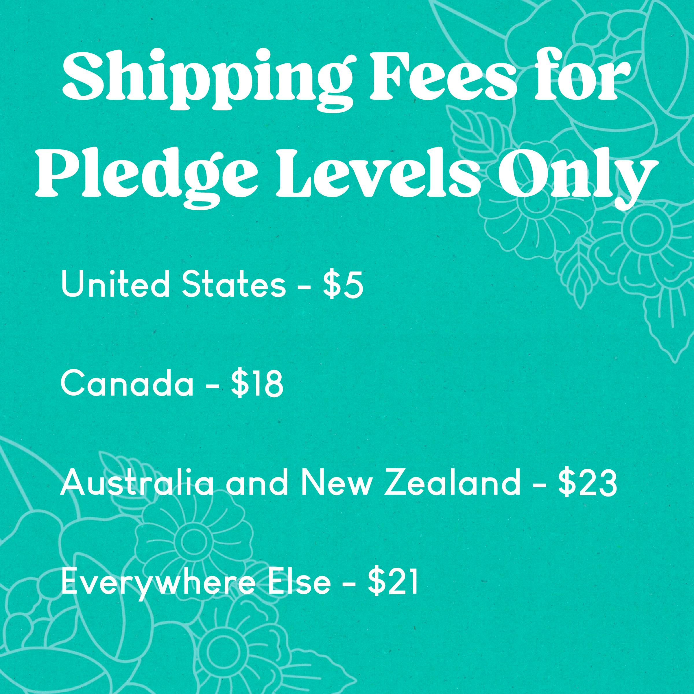 Below is a graphic with the shipping rates for different regions. These flat rates apply only to your pledge level, and are subject to changes depending upon shipping rates when the campaign ends. If there is a shipping increase it will only be between $1-$2.