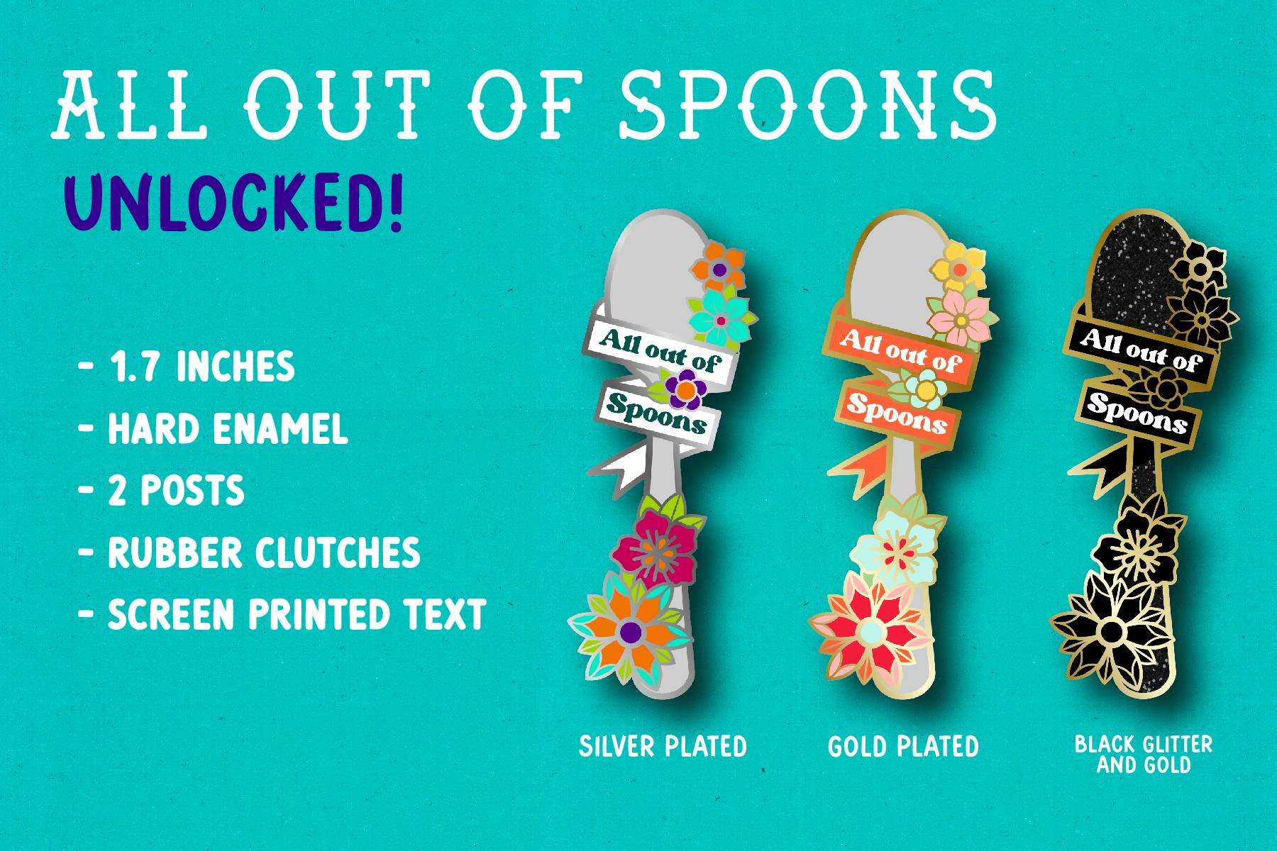 All Out of Spoons is the 6th crowdfunded pin collection by The Snarky Company.