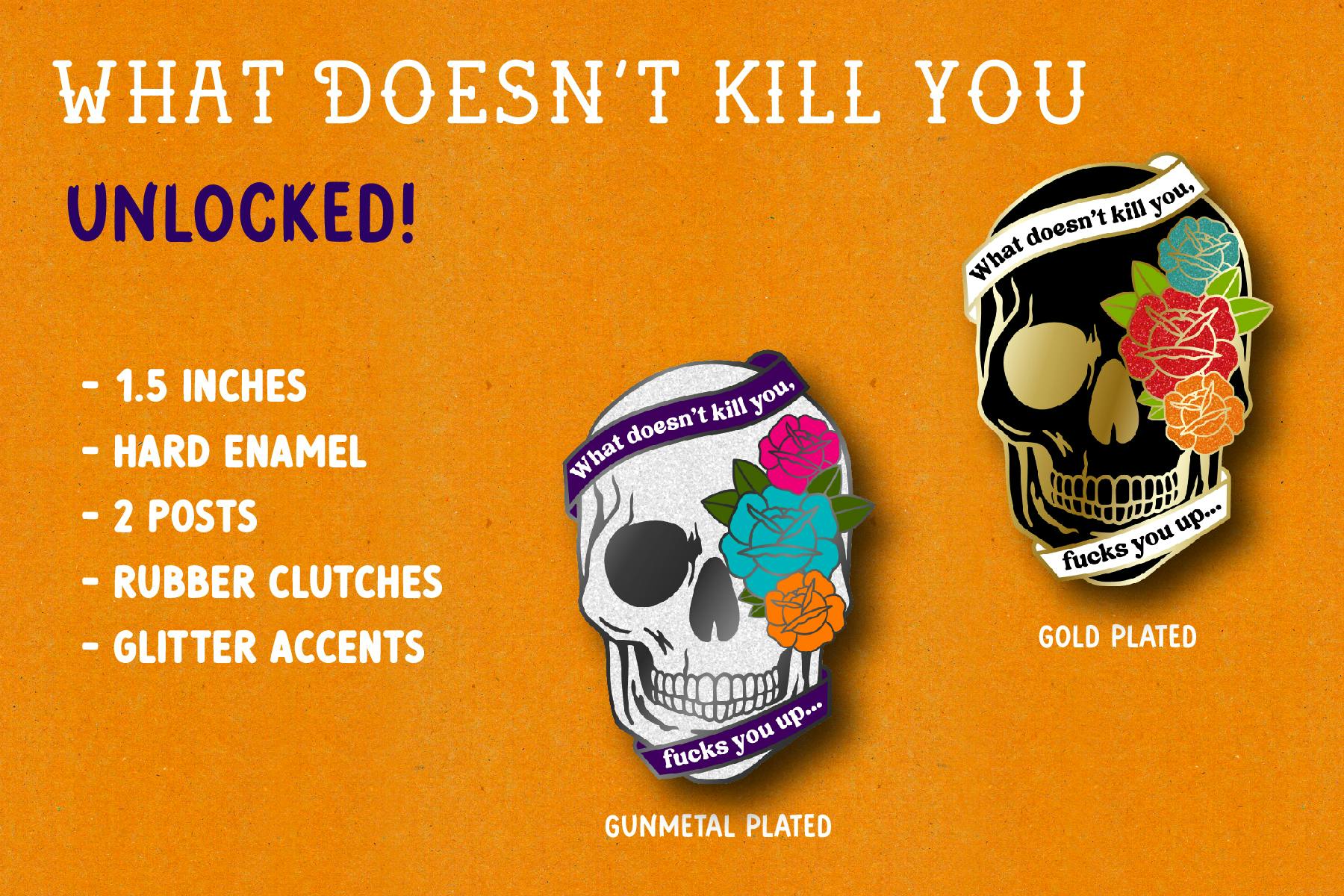 An important note about color and size. It is crucial to understand that while we have made pins before, the pins in this Kickstarter have not yet been manufactured. The designs you see on this page are mockups, which means the final product may vary in color and size. From our experience, the majority of our pins turn out looking like the mockup design.
