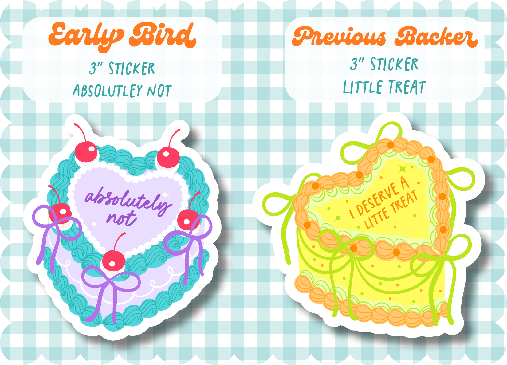Pledging successfully to two paired projects means free rewards! Pledge to Mythic Mgmt's Transcend campaign and Snarky Co's Bakeshop campaign and receive one free sticker from each campaign!