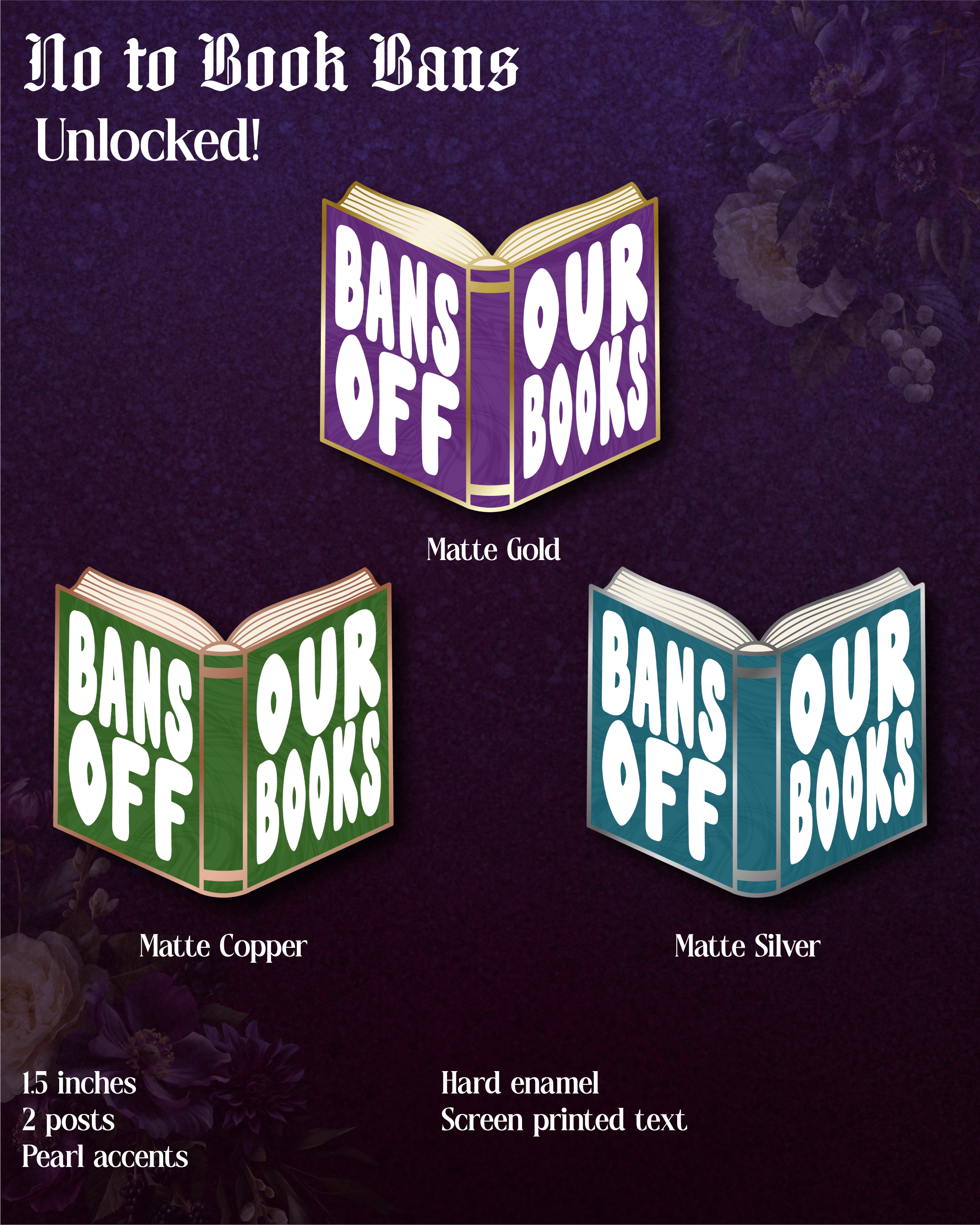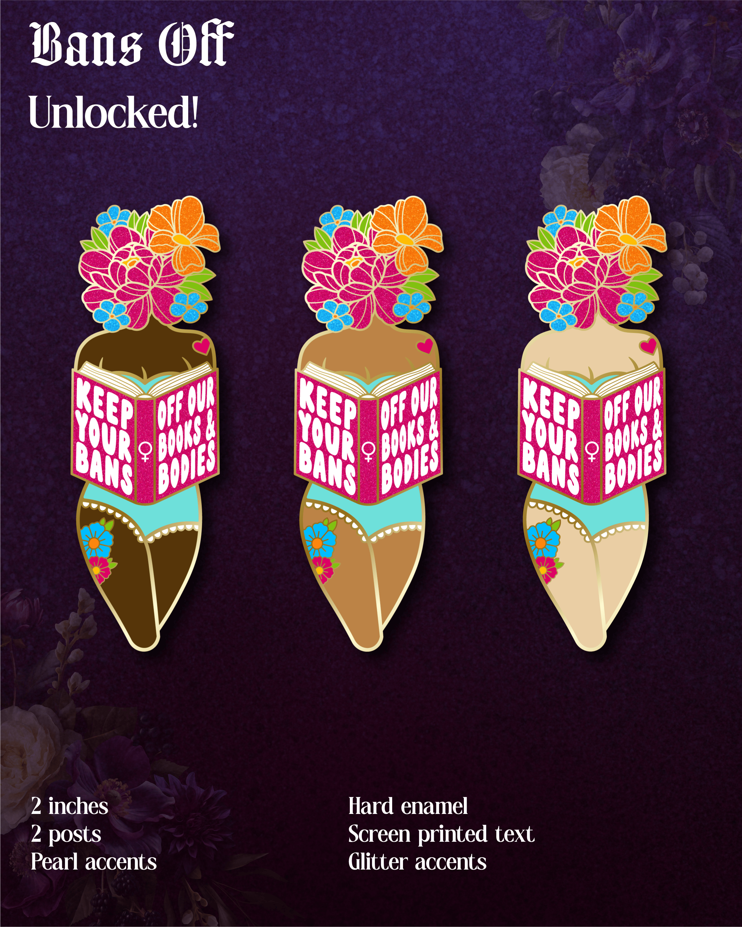 An important note about color and size. It is crucial to understand that while we have made pins before, the pins in this campaign have not yet been manufactured. The designs you see on this page are mockups, which means the final product may vary in color and size. From our experience, the majority of our pins turn out looking like the mockup design.