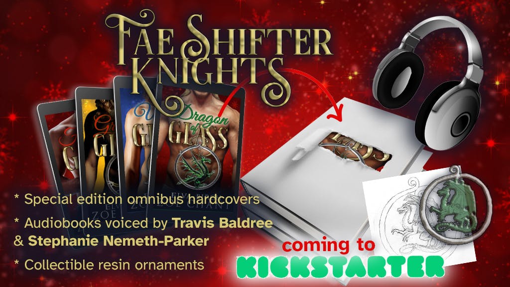 And although I haven't actually fulfilled this campaign yet, we're well on our way, and I wanted to let you know about a big project coming down the road over at Kickstarter! I'm super excited to announce that Travis Baldree and Stephanie Nemeth-Parker will be narrating Fae Shifter Knights, and I'll be producing deluxe hardcovers and collectible resin ornaments! Sign up here! It won't be live until late next year — there are so many moving parts to get ready!