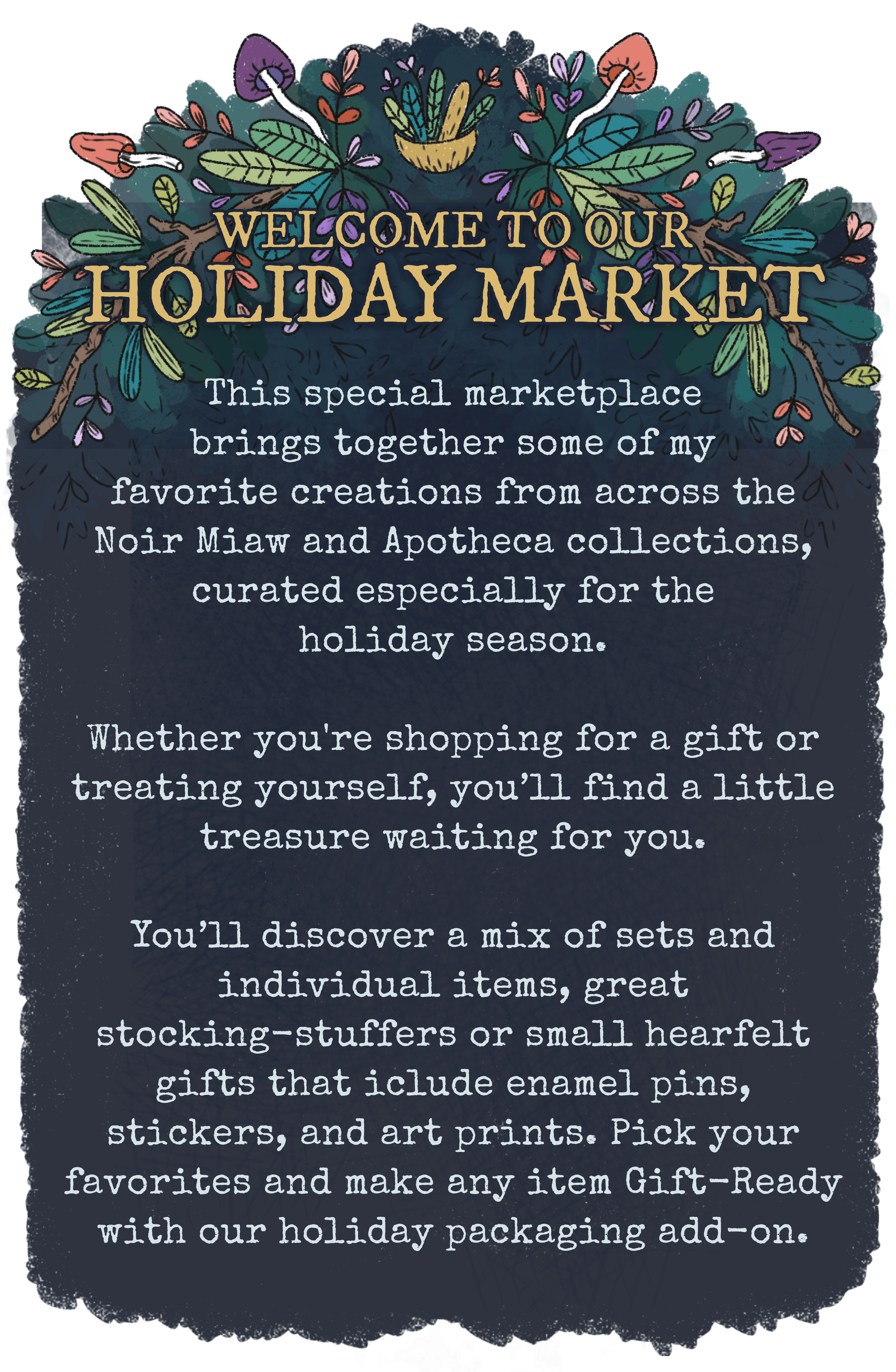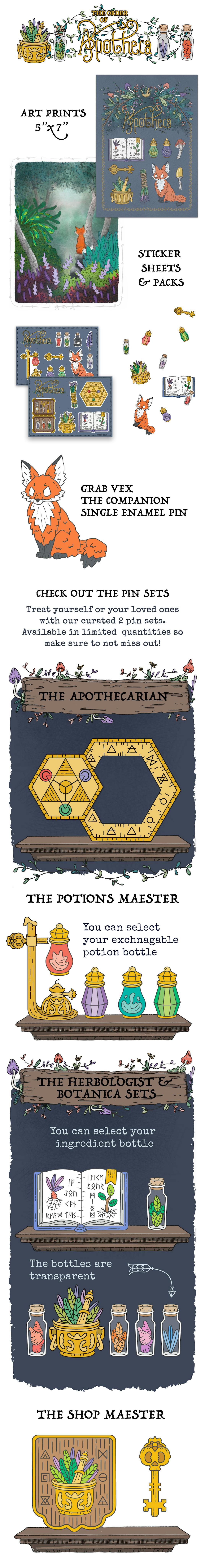 I embrace a variety of interests and believe there’s room in my heart for them all, so you’ll find diverse expressions of botanical watercolor, fantasy & RPG gaming collectibles, enamel pins, stationary, accessories, & more. From successful crowdfunding campaigns to exciting new projects on the horizon, I’m constantly working to create something special for my community.