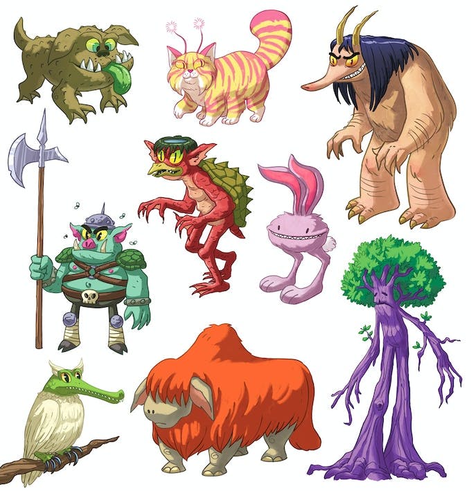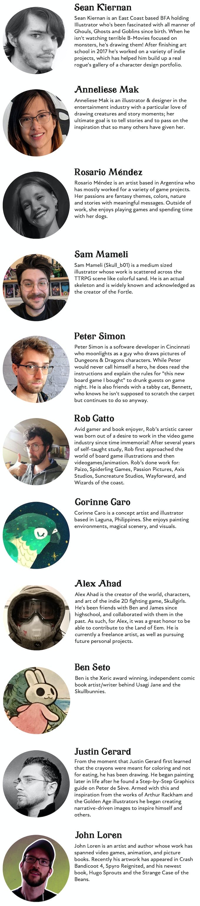 Land of Eem is chock full of original and classic fantasy foes, each with an unusual spin on traditional tropes. While the core rulebook includes a select handful of adversaries, the Bestiary contains those and many more—all illustrated in full color.