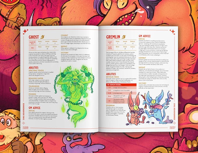 The Core Rulebook contains 25 adversaries to pit against Land of Eem adventurers, while the Bestiary contains the full 160+ roster of creatures, critters, and creepers.