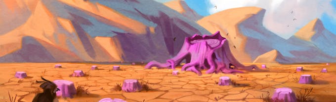 The Used T'Be Forest: Home to the goblin tycoons and corporations that fuel the Dungeon Era, the Used T'Be Forest is a barren landscape of cracked earth and felled trees. A true testament to what happens when big business and small moral fiber make a mess of the natural world.