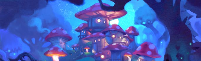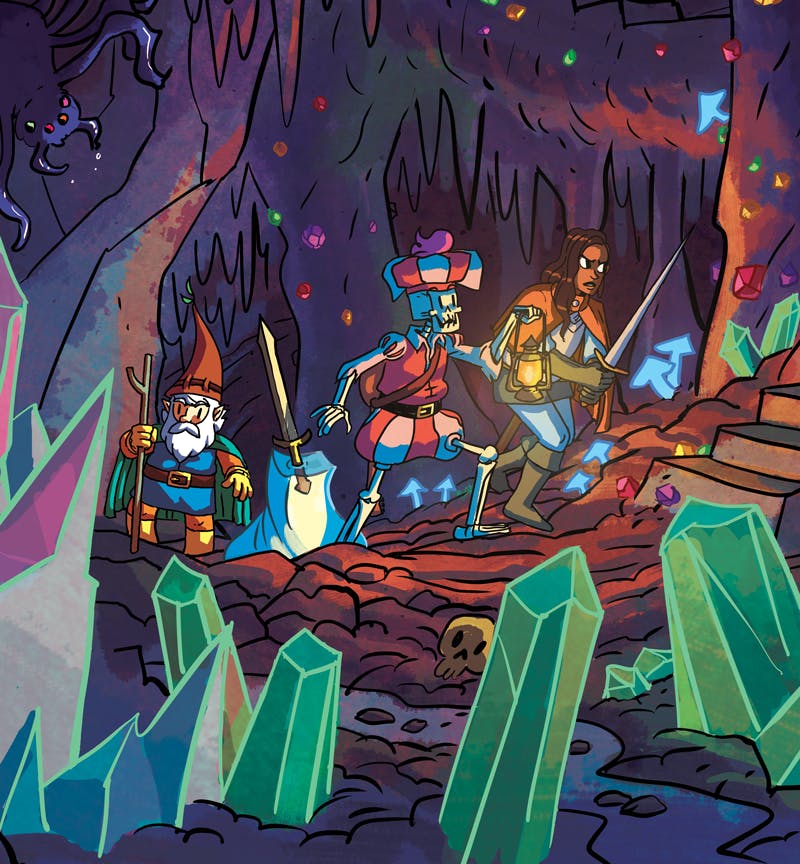 Eem is a land of color and wonder, a world with many storied regions and realms teeming with diverse cultures and a plethora of characters and creatures. Eem is also a land in decay, for the great civilizations of the past crumbled long ago at the hands of the mysterious GLOOM KING. Ever since, the world has declined into an untamed, unchecked land filled with all manner of monsters and fiends, fearsome warlords and, most recently, greedy tycoons... ushering in an unruly industrial age called the DUNGEON ERA. A time chaotically run by rival goblin corporations locked in a never-ending quest to outdo one another in business and expansion. All the while, average folk toil away in mines, factories, and dungeons, eking out a meager existence.