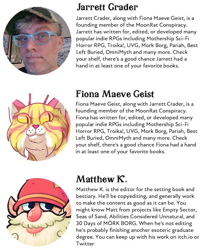 How and when will the digital files be delivered? The digital files will be delivered via Backerkit and the website Drive Thru RPG. Why two places? Many gamers like to have their digital files collected in one place and Drive Thru RPG provides a great resource for that! For Backerkit you will receive an update in the same BackerKit account you access post campaign to provide your shipping and add-on purchases when the file is available. This will happen after all orders are locked and payment has been collected. For Drive Thru RPG, you will receive an email when the files have been uploaded. Digital fulfillment will begin before physical fulfillment and we will post an update in the campaign with a timeline once those files are complete.