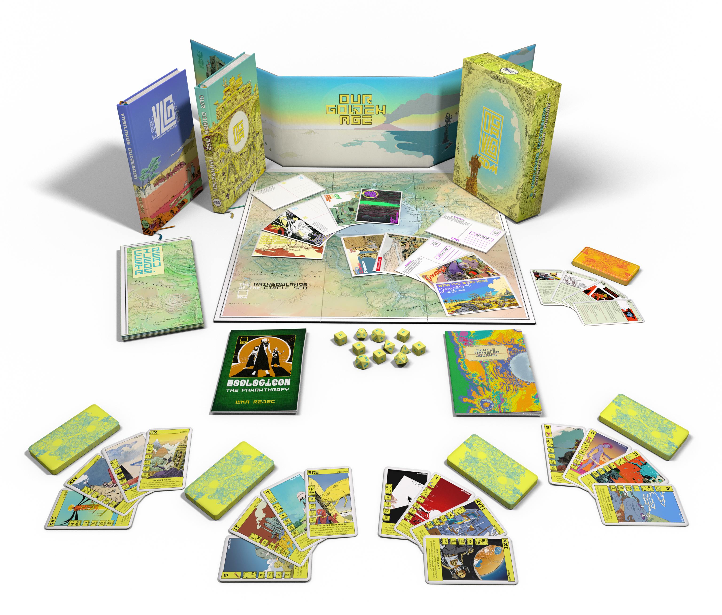 - Our Golden Age and the Mother Machine (physical) — the setting and adventure book in hardpaper and trueglue, printed into glorious polychrome existence just for you! Includes UNLOCKED Circle Sea Travel Map inserted into book.
