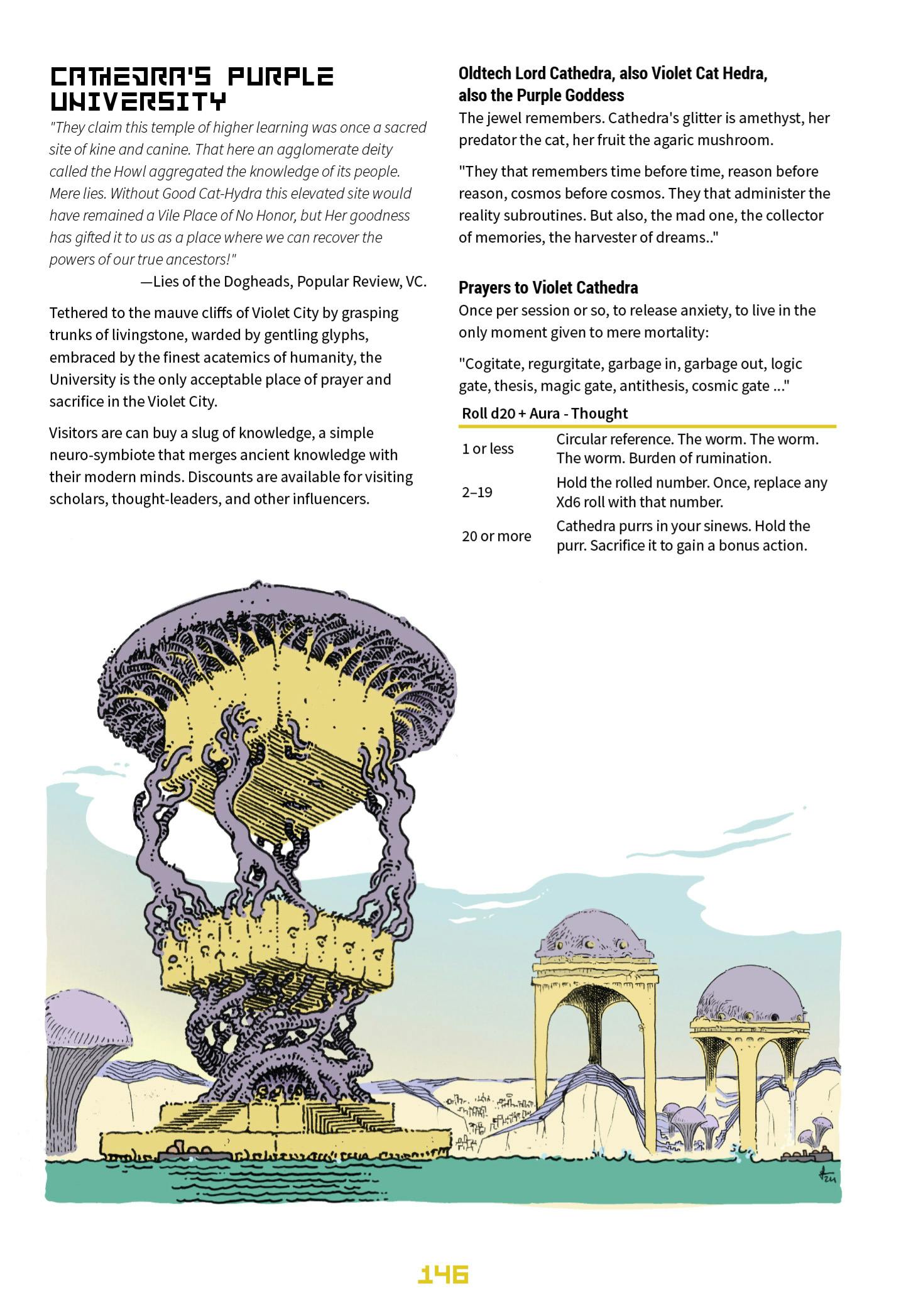 The Purple University which is also the temple of Violet Cathedra. The opposite page of the spread isn't done yet, so this is just a single page.