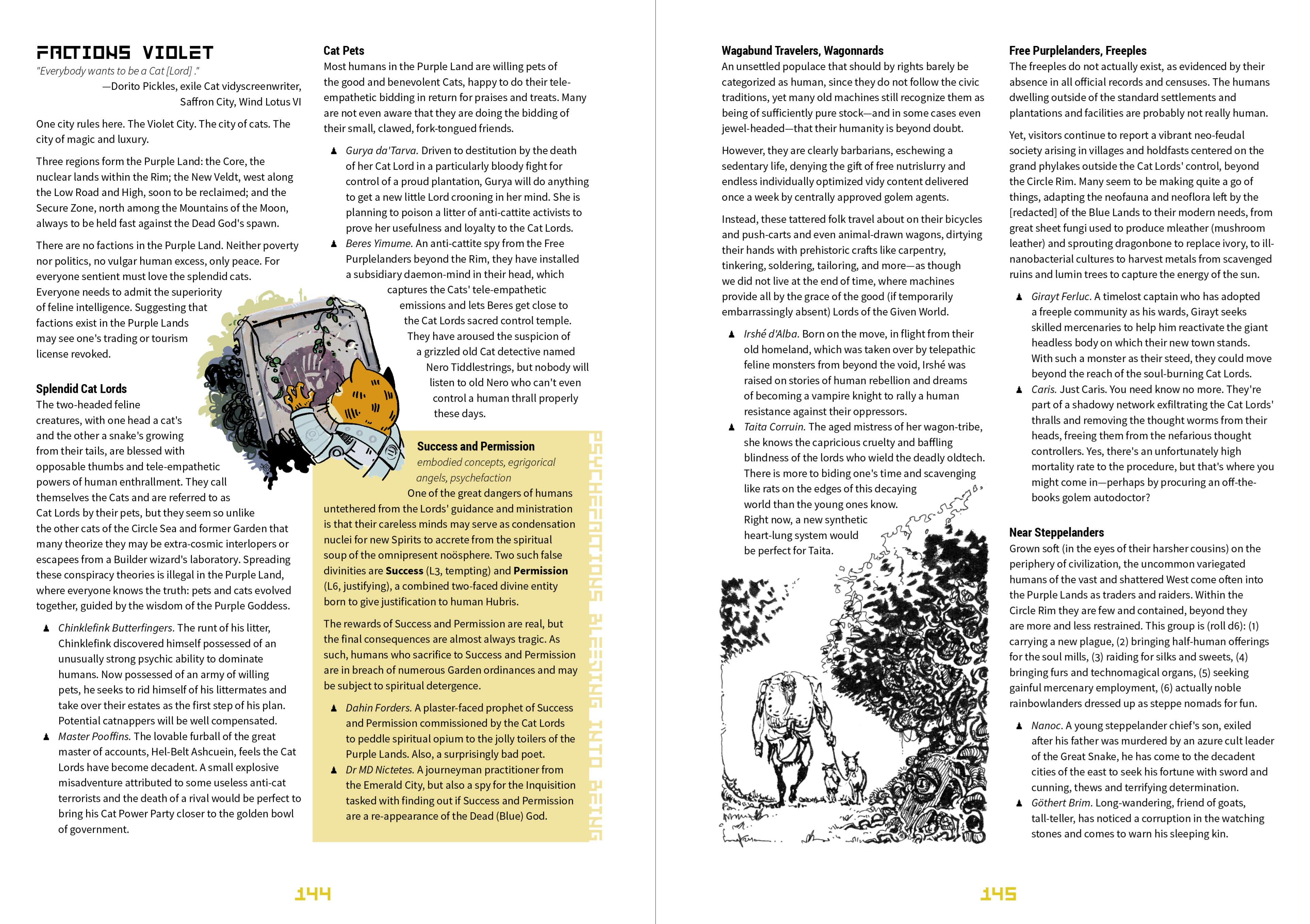 I don't really have many pretty spreads or texts to share right now, since I just got back to working last week. I guess the fair play at this point is to challenge y'all - which do you want to see first? The flesh magics or the bestiary of all humans? Comment-pete in the comments, since this is not a poll.