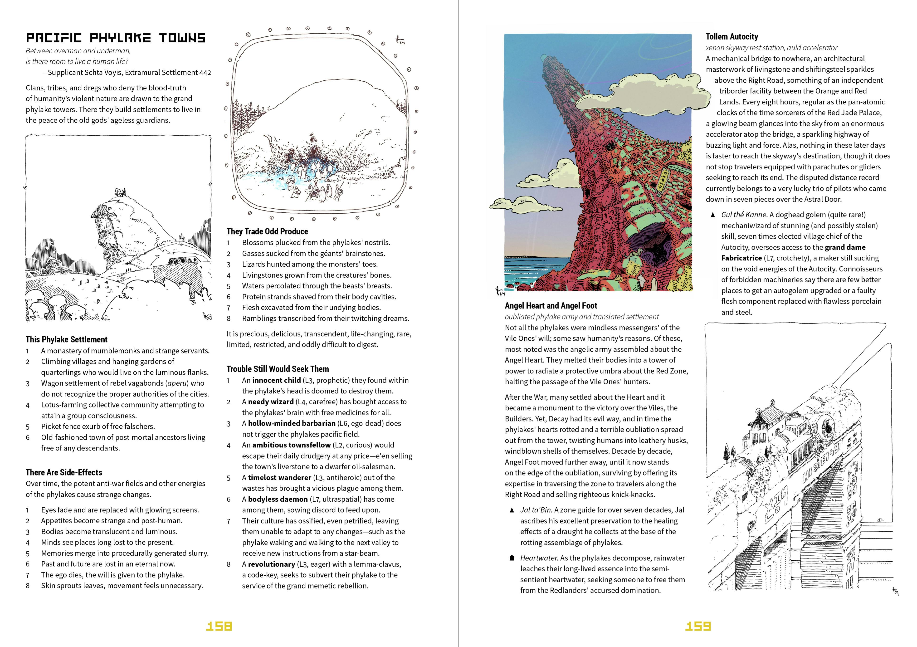 One of the features of the Circle Sea region are the strange settlements that have grown up around the various Phylakes and other grand old buildertech era facilities. Here's a few to sprinkle around and two specific ones from the Red Land (explaining why this spread is there).