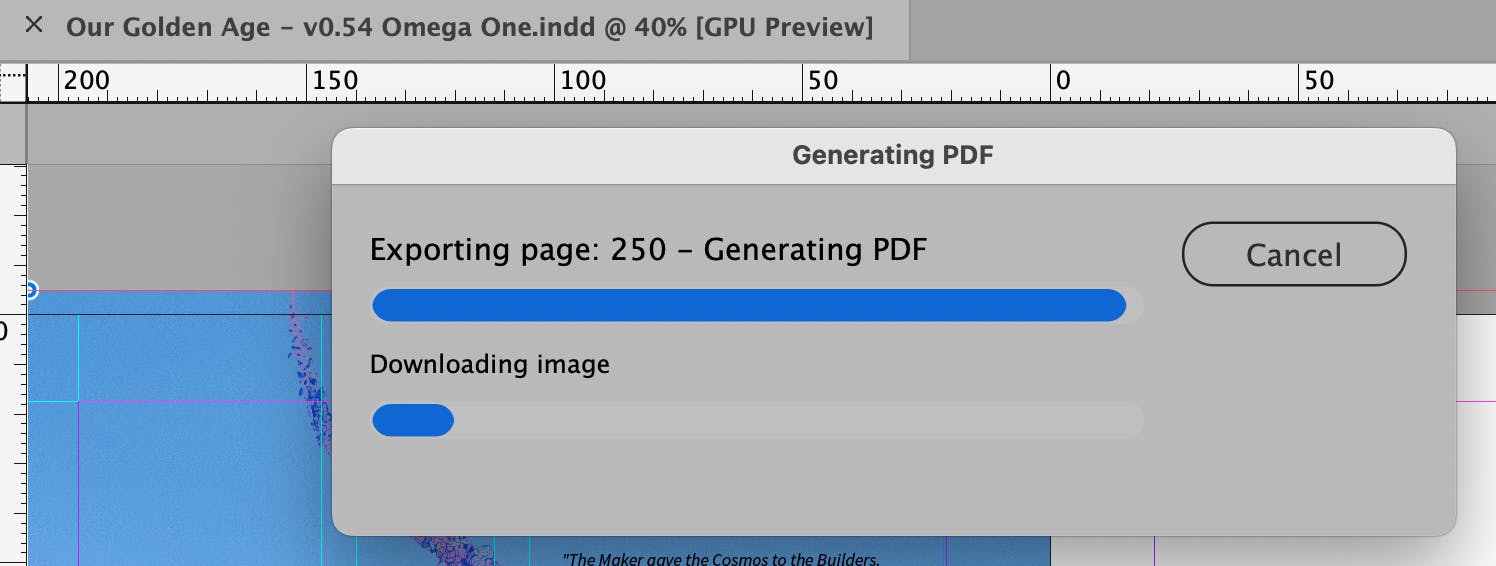 Our Golden Age is with our munificent editor, the most wordie lexical M. B. Stoddard, accummulating instructions for its further perfection. Subsequent to that editing, I will review and revise the grand file and assemble the Index and End Pages, completing the tome for a semifinal pass and the printing of the proof copy. That's where real live humans with naturally selected intelligences will read words on paper to see mistakes I have made (like the line missing in UVG 2E because I covered it with a piece of art - mea culpa). The editor has already found a spot where I seem to have gargled up two spreads.