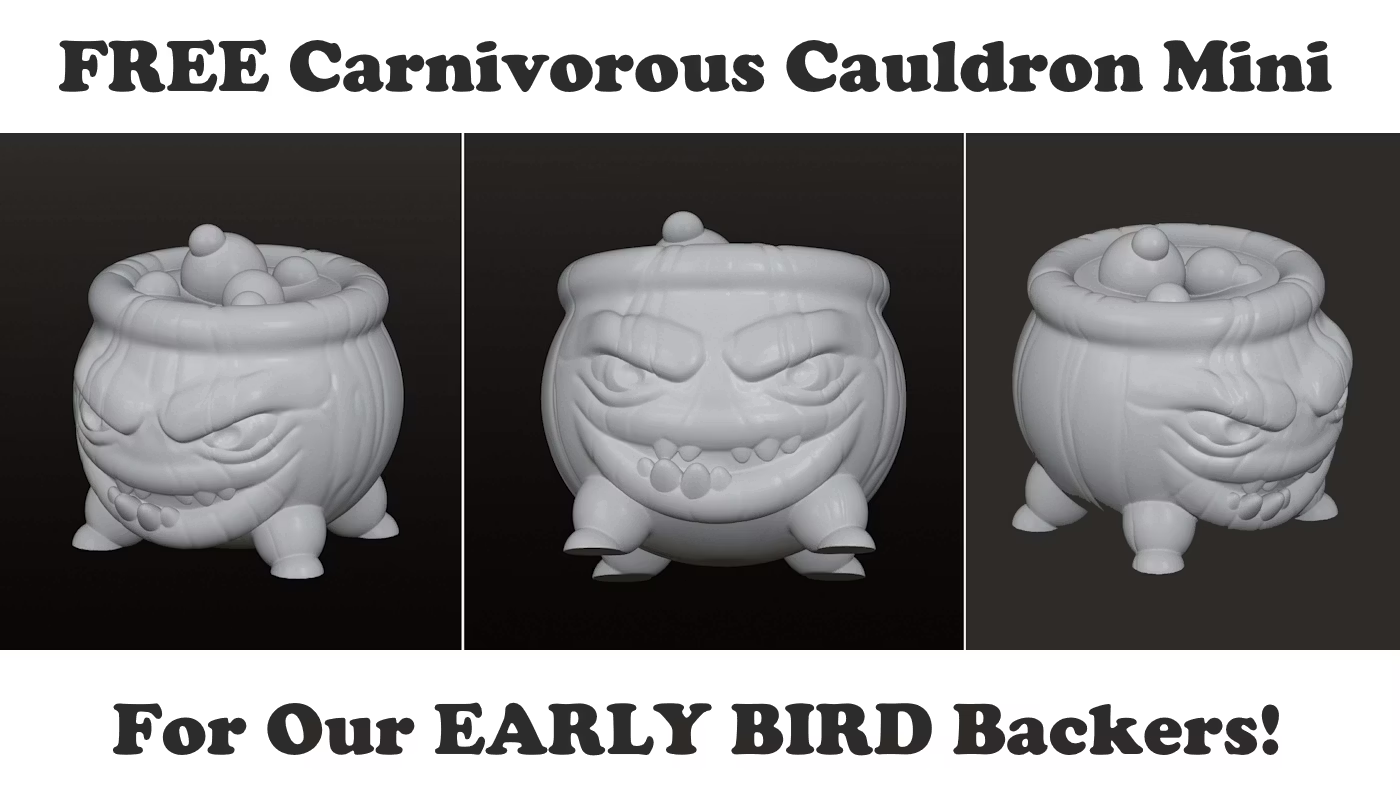 EARLY BIRD: If you back at any physical pledge level duing the first 48 hours, you get a FREE Carnivorous Cauldron miniature!