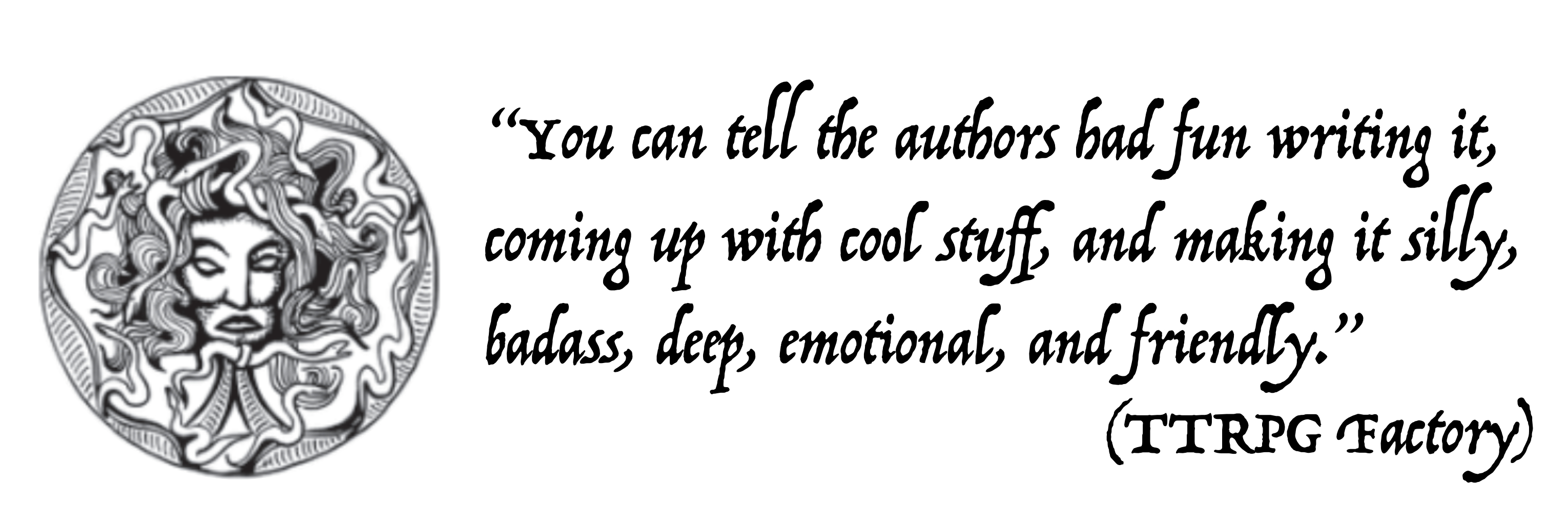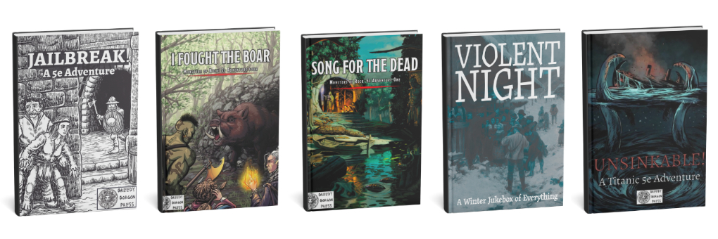Greedy Gorgon Press are a platonic throuple of TTRPG enthusiasts dedicated to bringing a little more rock and roll to your RPG romps. Like a literary human centipede, you don't know where one of us starts and the other ends. We bring a touch of barbaric rage against the machine, a hint of Megadeth saving rolls and a smattering of AC/DC to your, well, AC and DC.