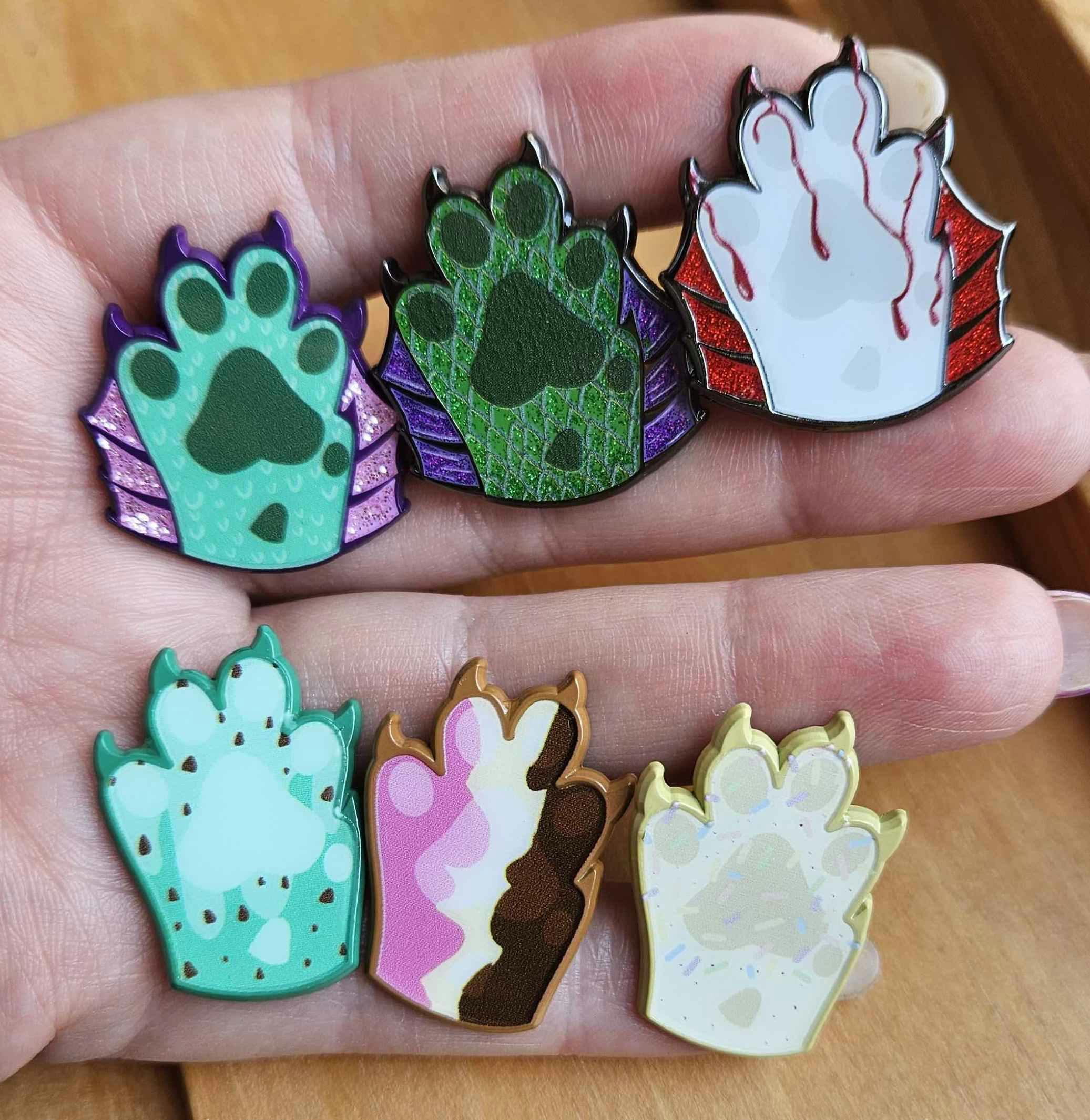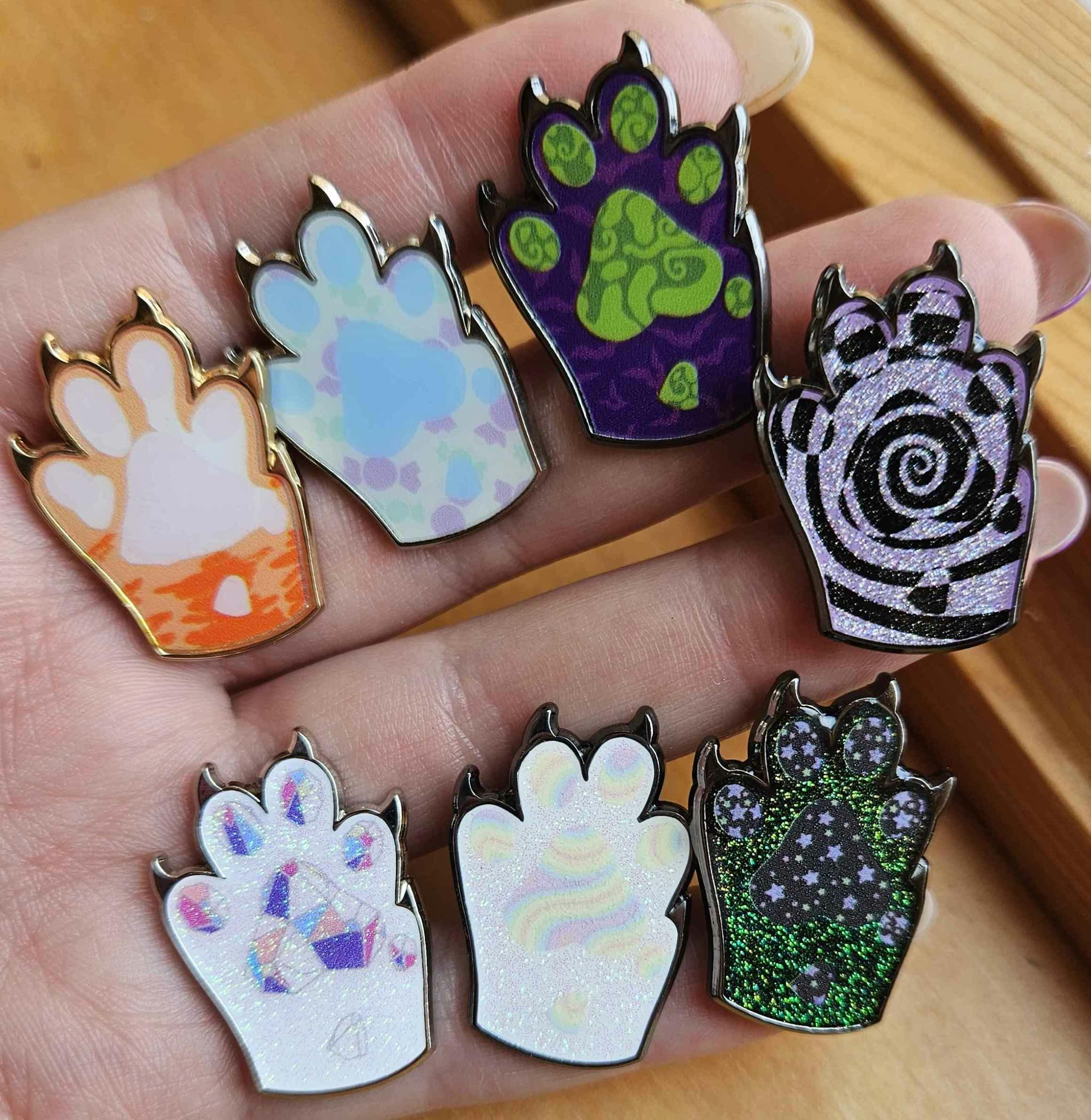 Seconds grade pins are ones with noticeable flaws even at a distance. These may include flaws like holes/craters in the enamel (caused by bubbles that were polished down), large or dark specks in the enamel or metal, very significantly low or missing enamel, smeared or very uneven printing, overflowed enamel, really deep scratches in the enamel, visible metal behind glitter. When I sell seconds grade pins at conventions, people usually do not care about the flaws and happily purchase them anyway. These pins are a good option for someone on a budget who still wants to add to their pin collection and may not care about imperfections and larger flaws.