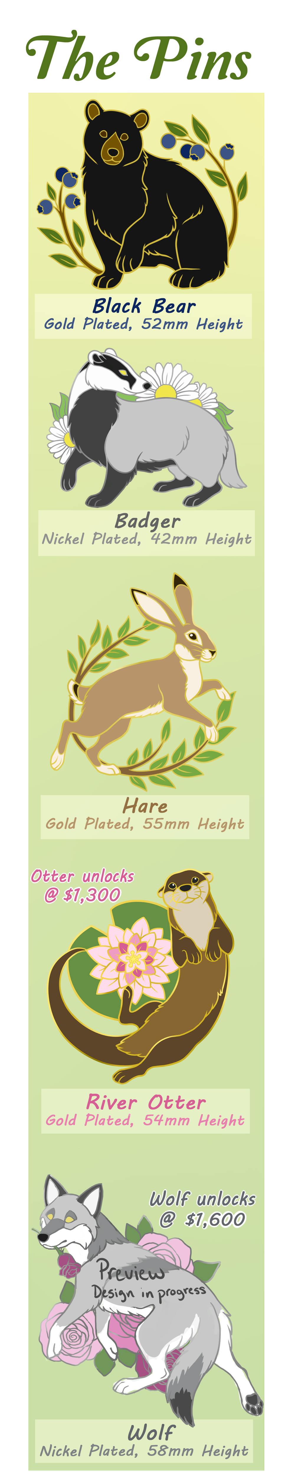 My funding goal for this campaign is $1,000. This will fund the Black Bear, Badger, and Hare designs. If my campaign reaches $1,300 I will be able to put the otter design into production. The wolf will be produced if I can reach $1,600! You can pledge for all 5 designs right away and change your pledge at anytime if we don't reach my secondary goals.