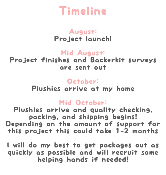 We'll need a lot of support to be able to put in an order with my manufacturer, so just like last time I'm offering a lot of stretch goal items that will be added on to every pledge for free! Things like stickers, patches, buttons, etc. all will be included as freebies with each package but only if we reach the stretch goals, so if you like the project please help spread the word :>