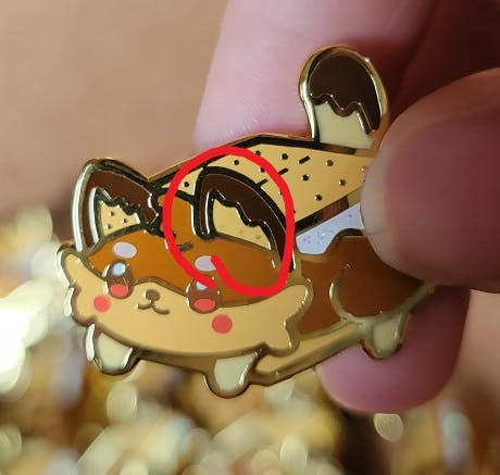 The collab pins had an error where the left ear was not sanded down well enough, so the little biscuit dots were covered by enamel. There's not many normal ones so I'm finishing up what I can with the orders that are able to go out