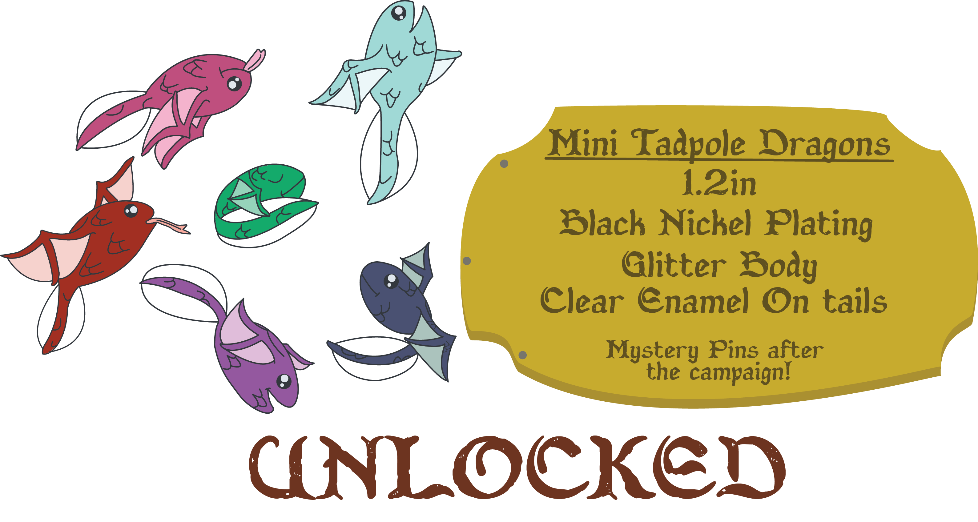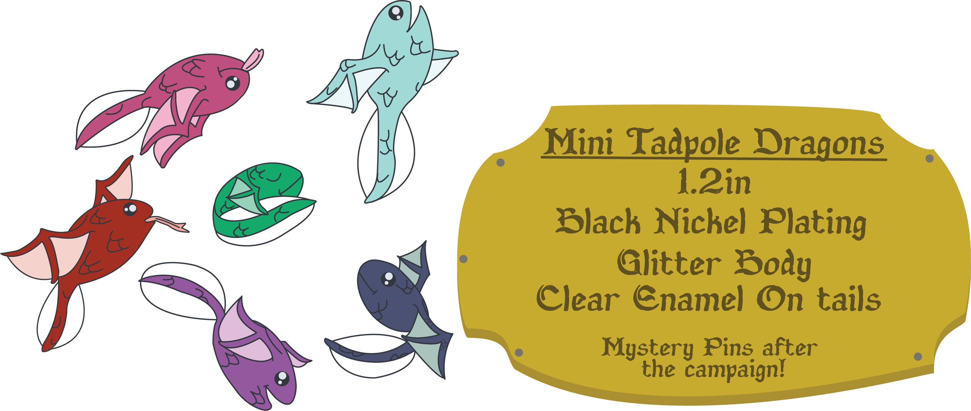 Mini Tadpole Dragon Pin $8 Add on a mini 1.2in tadpole dragon! During the campaign you'll be able to choose the color you want! Mini Tadpole Dragons Full Set $35 The full set of tadpole dragons! All 6 of them for a discount of $35. Regular price is $40.