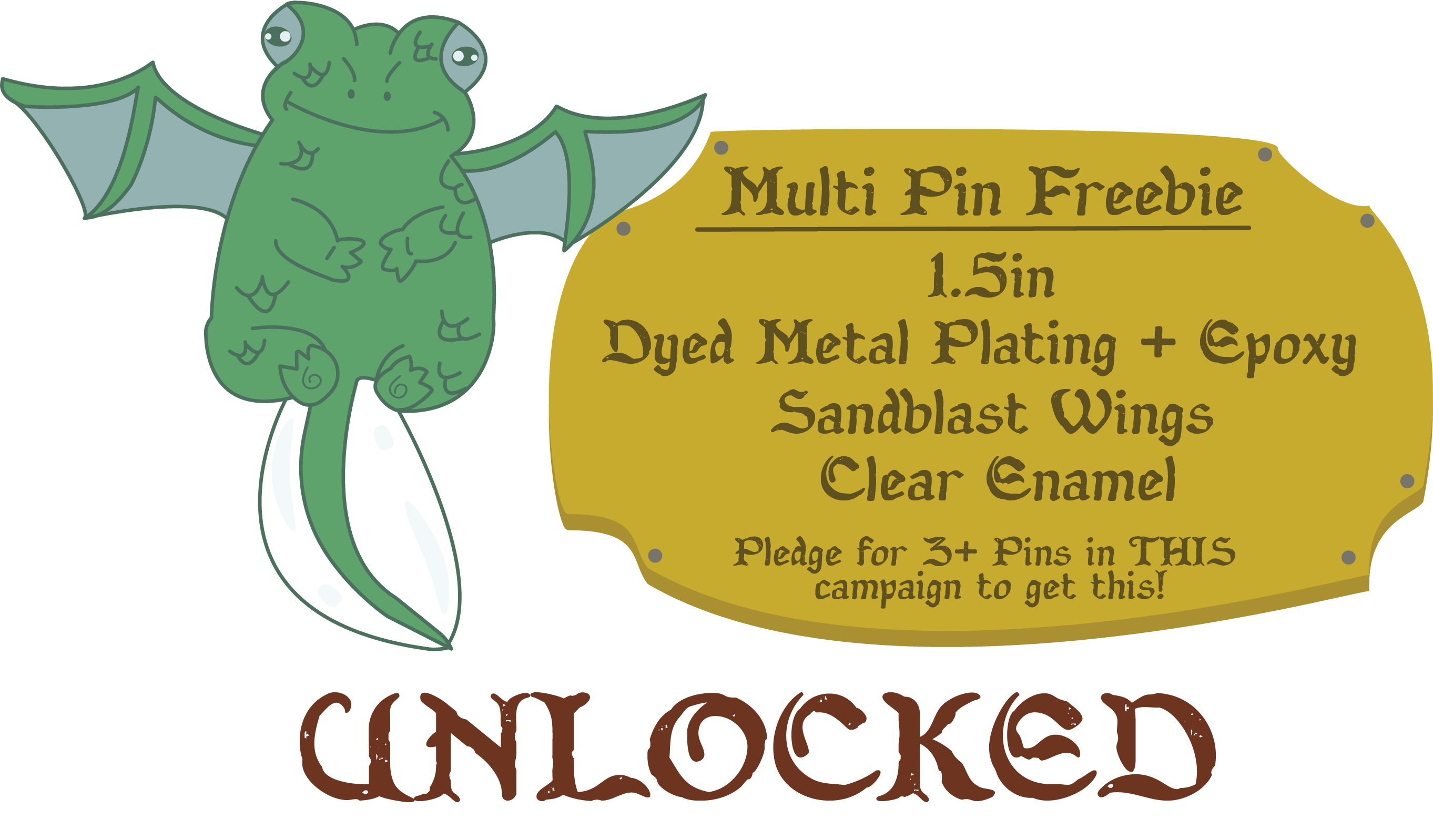 As it sounds, you will receive 1 single enamel pin of your choice from the unlocked designs. Surveys will be sent out later after the campaign is over! You are eligible for the early bird, returning backer, and quest freebie with this tier. Tiers continue on after that all the way up to 5 pins.