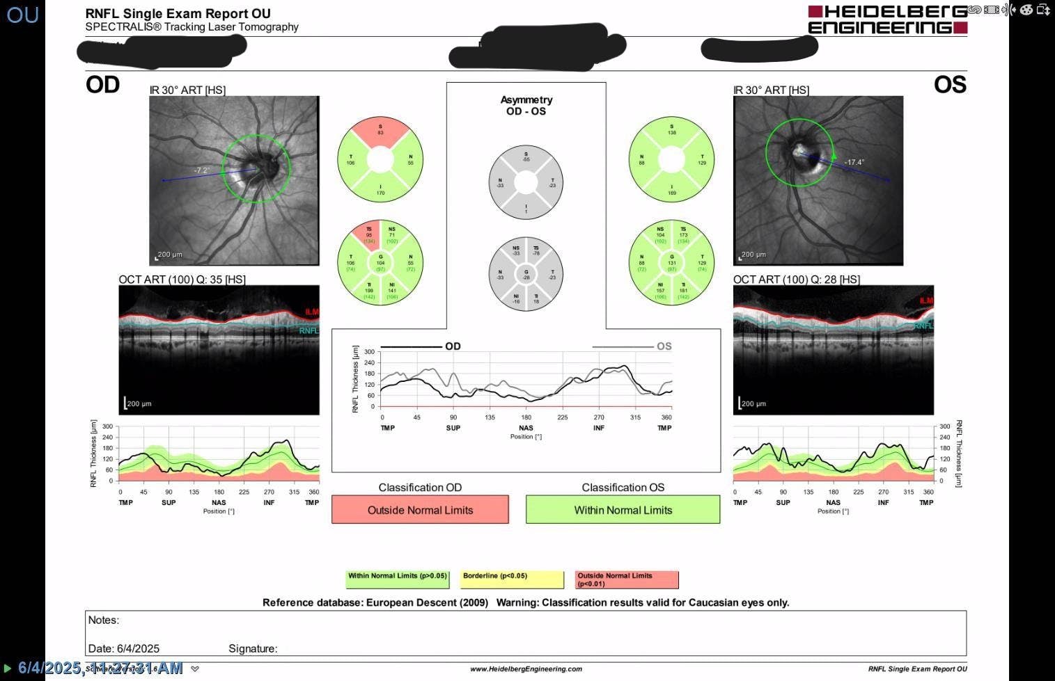 Here's the eye scans from last week's appointment. left vs right, and last year vs this. You can see the layer separation happening, it's kind of crazy!