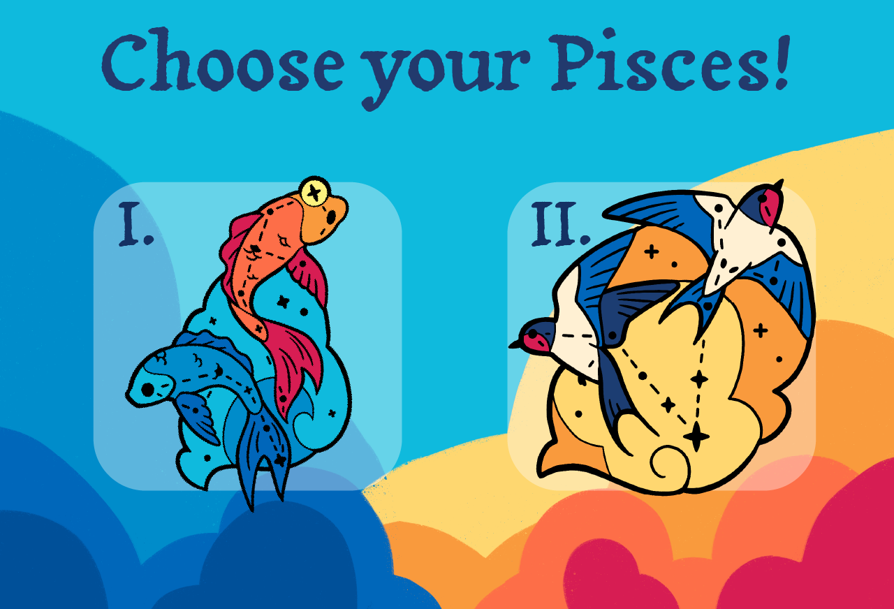 Now, I know what you are thinking: What could be so difficult about Pisces? It's literally in the name, just draw fish. But HOLD ON! Did you know that in ancient Babylon the Western fish was called "The Great Swallow" and the Eastern fish "Lady of the Heaven"? Now that conjures up a whole different imagery, doesn't it?