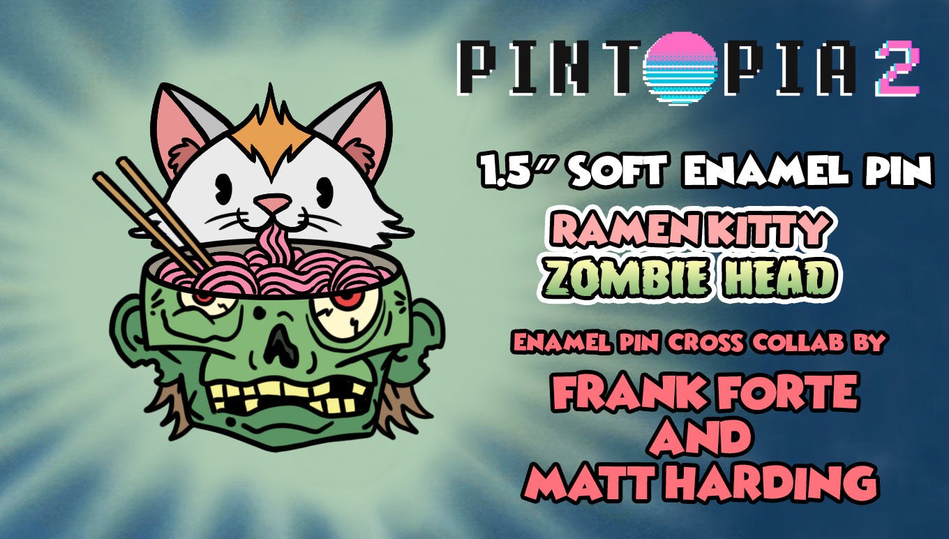 'RAMEN KITTY ZOMBIE HEAD" CROSS-COLLAB PIN BY MATT HARDING AND FRANK FORTE