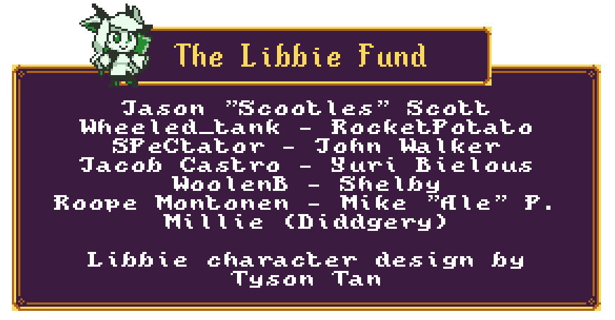 Libbie is a mascot character designed by Tyson Tan, originally made to represent the open source office software library LibreOffice. Tyson is a well-known proponent of open source creative software, and has designed mascots for many open source projects - including Godot, the game engine that Petal Crash 2 is built in!
