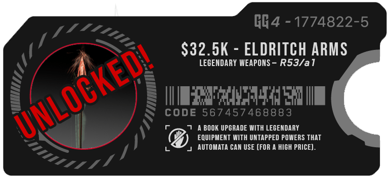 The book will now include a list of special Eldritch Arms, legendary weapons containing untapped powers, but at a high cost for your Automata. Each Eldritch Arms weapon will also have a corresponding card in the Equipment Deck.