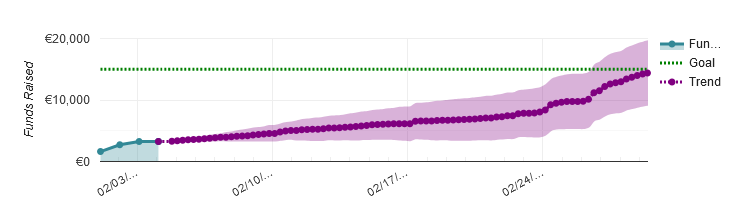 The data for the approximated trends for the campaign are not looking good. As you can see from the image, the current trend is falling below the funding goal, as the amount of pledges has basically plateaued.