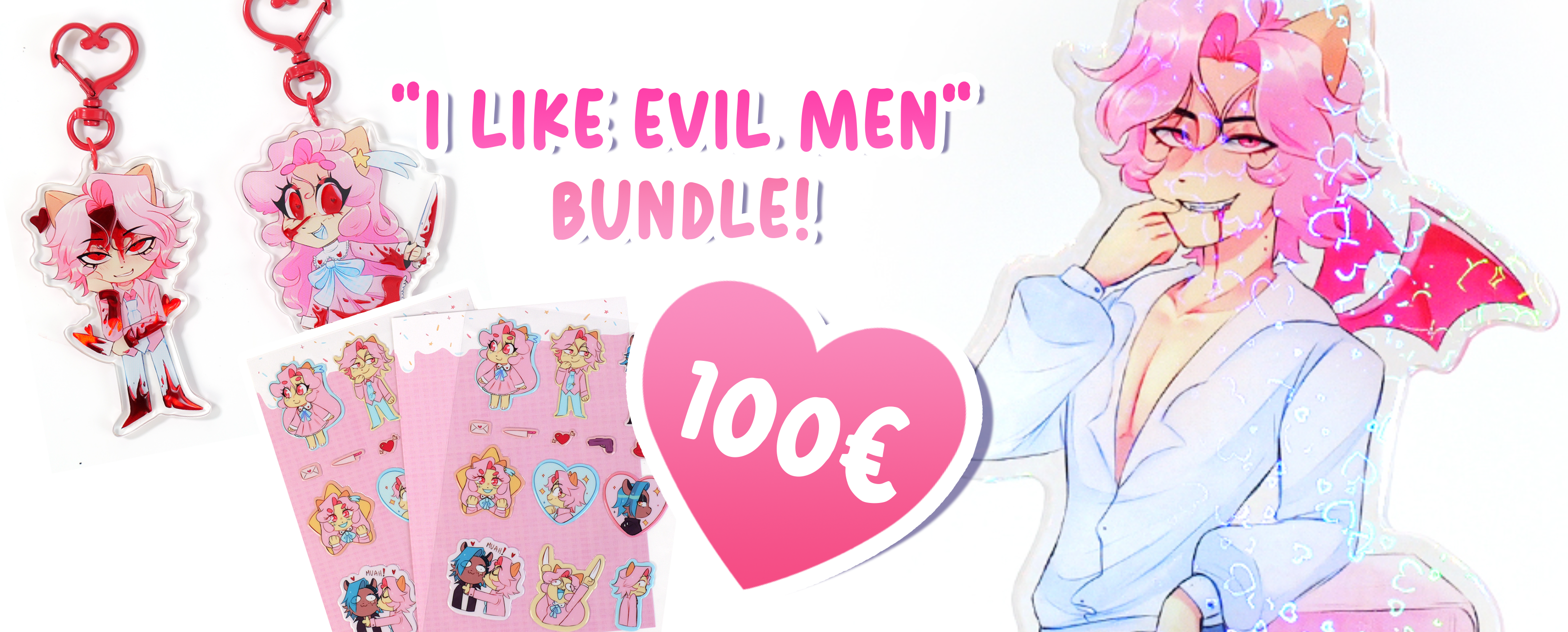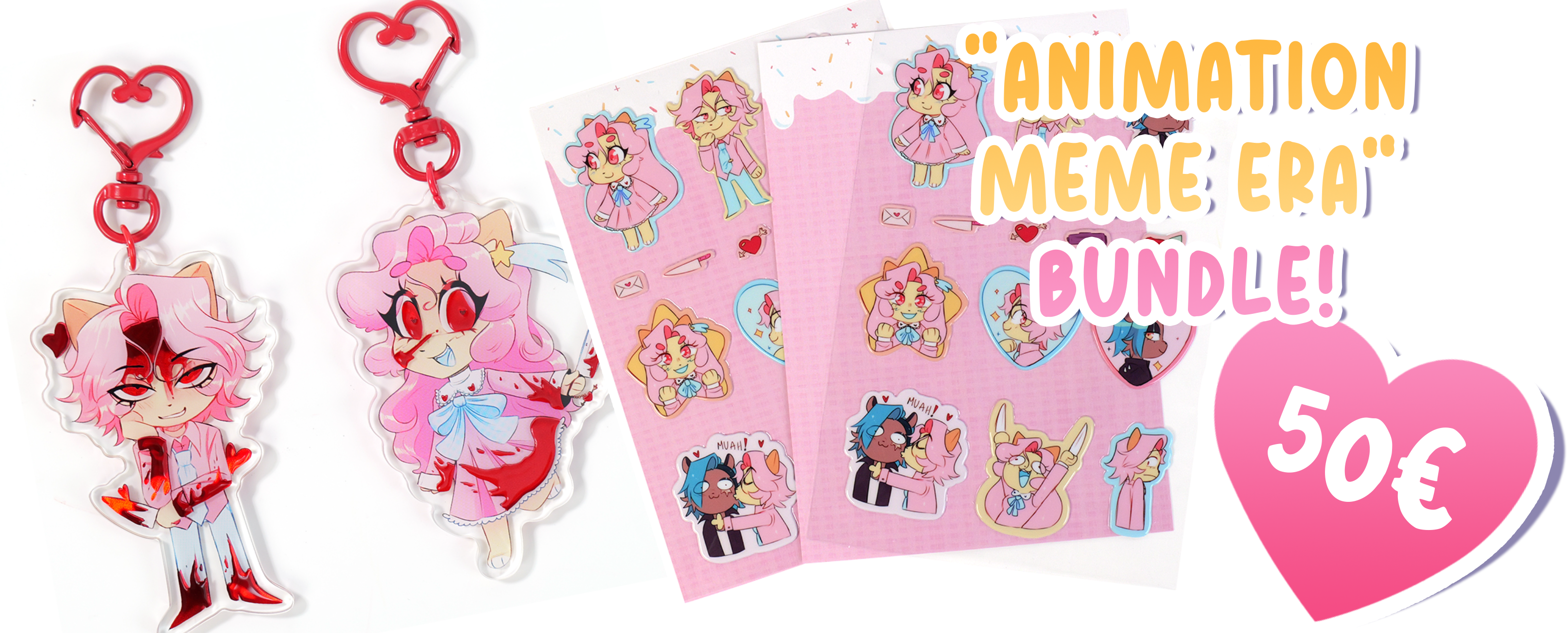Woah! Exclusive bloody keychains of Cream Puff and Pie and a puffy sticker sheet of the trio! This tier is reserved for long term fans that have been around for years and really wish to show support and also get merchandise via this crowdfunding. This also includes previous digital rewards.