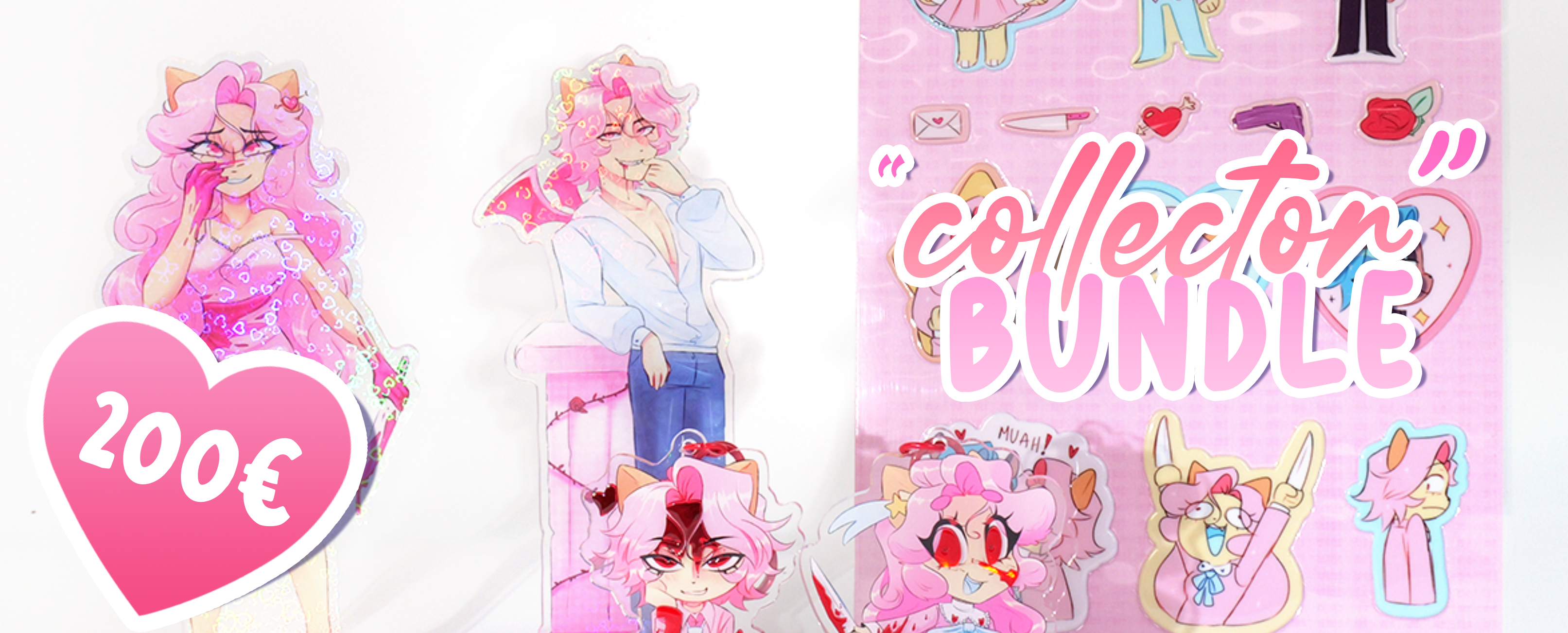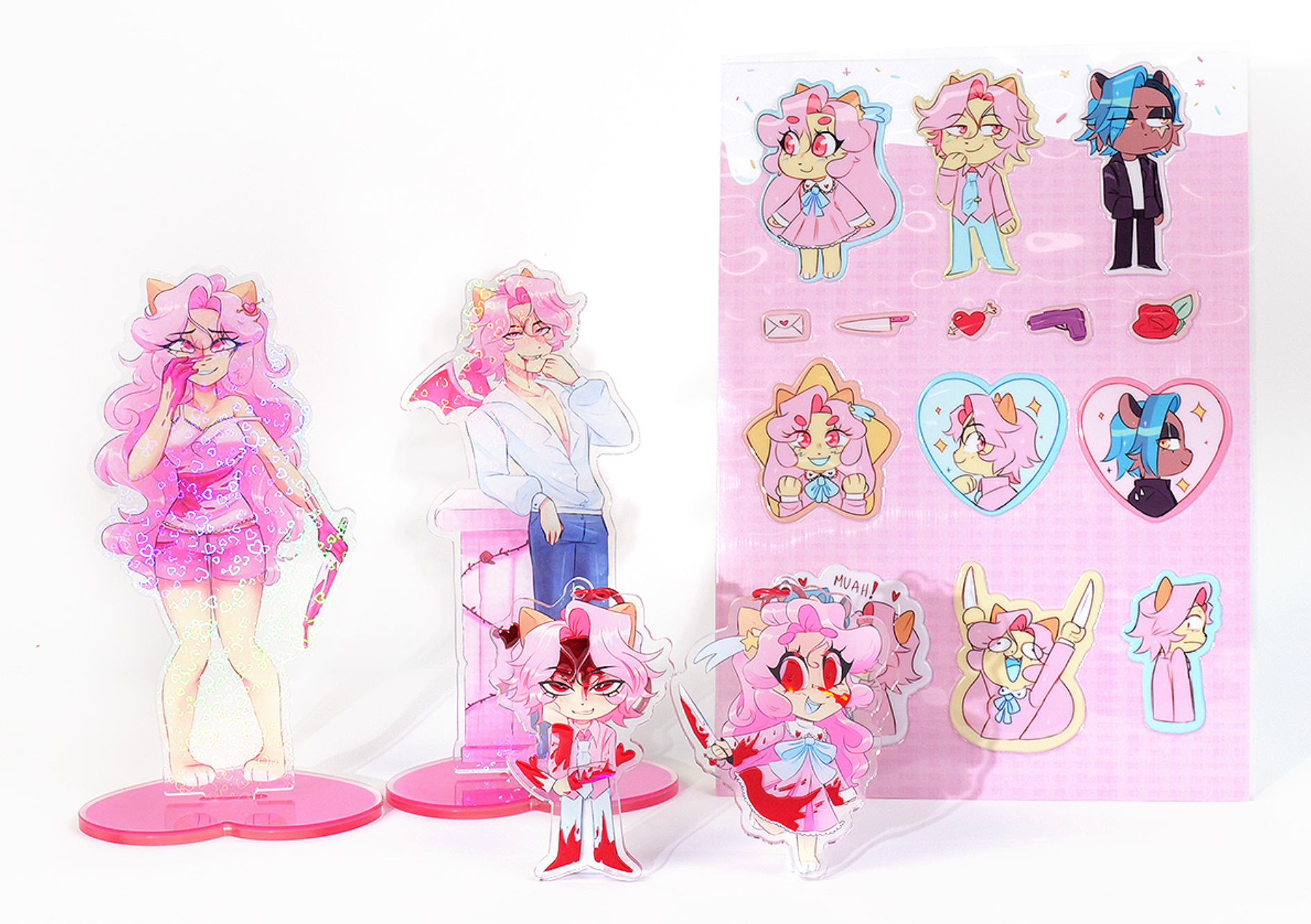 You want BOTH acrylic standees of Cream Puff and Pie??? I am scared, but you know what? I appreciate your support! Because this bundle includes ALL previous rewards! Yes, both acrylic standees, keychains of Cream Puff and Pie, puffy sticker sheet and digital goods!