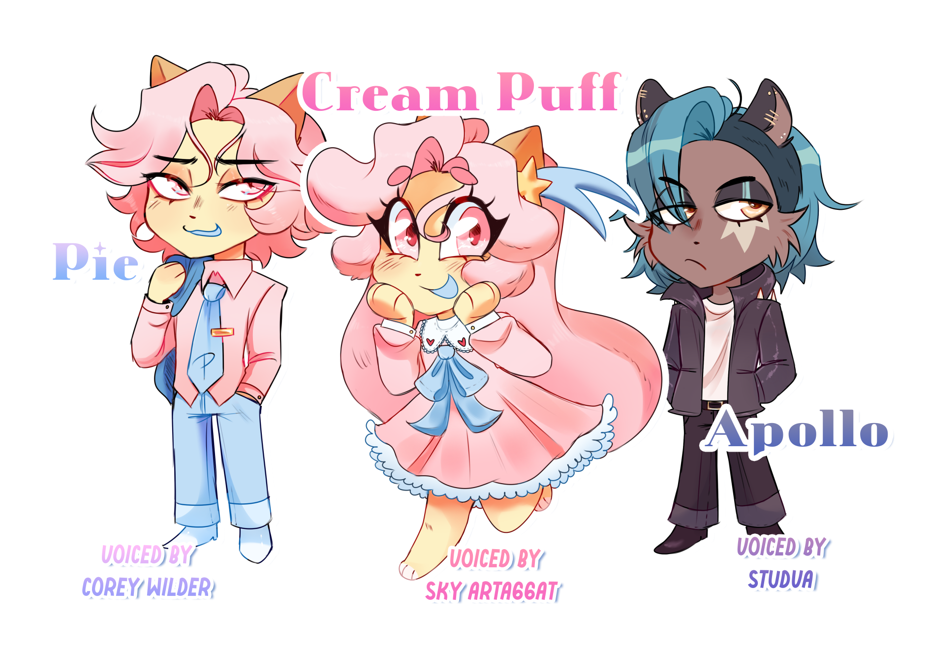 Hey- have you ever wondered- wow I’d love for my original character/sona to directly interact with these characters (we all know it’s Pie, don’t lie to me). Well! Now you can! With this reward, we can include your original character/sona into the animated world of “Puff & Pie” as a background character that interacts with the main cast! This also includes all previous rewards: 2 acrylic standees, 2 keychains, puffy sticker sheet and digital goods. I guess you could call this CEO level tier reward haha...haha, okay not my best joke.